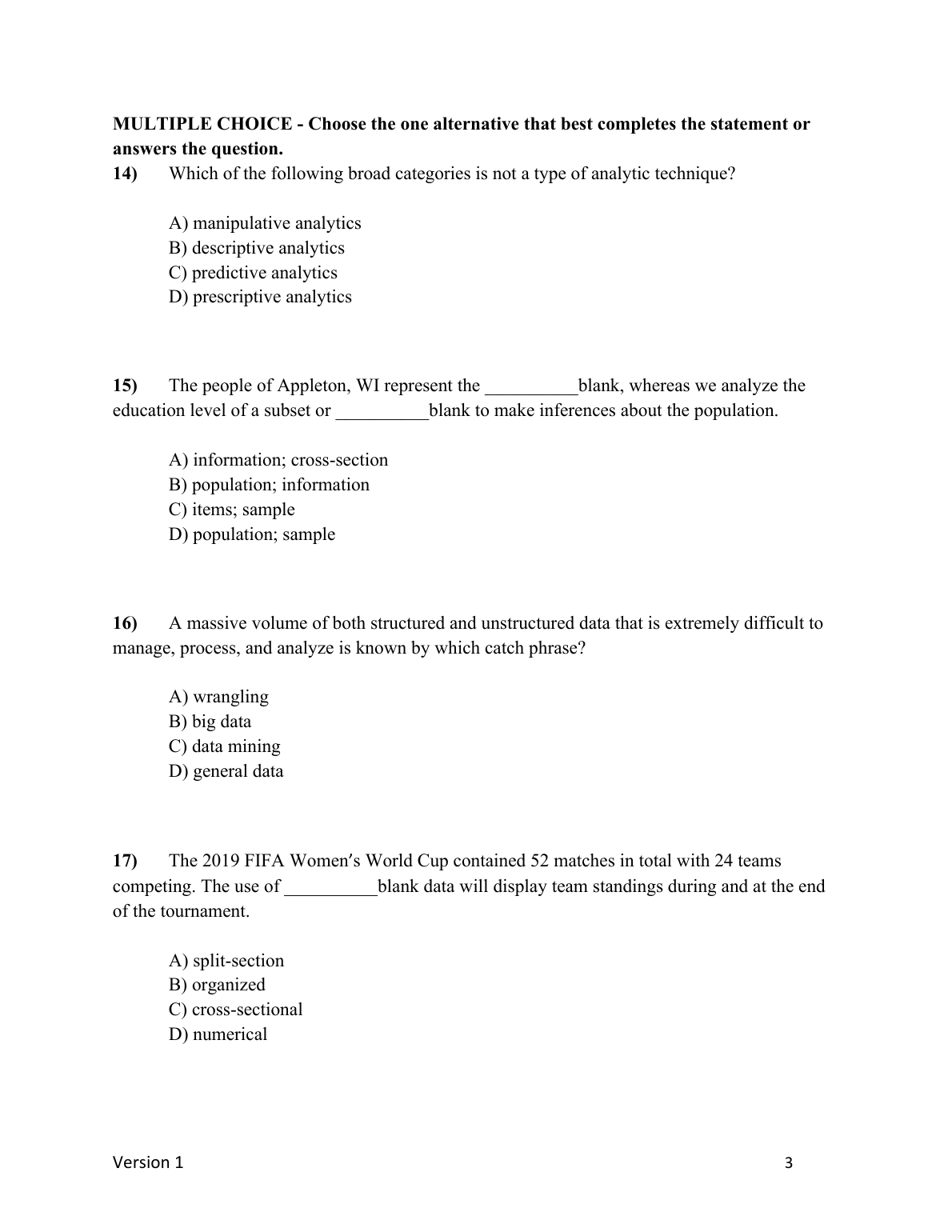 Ace your Business Analytics exams with this comprehensive Test Bank for the Second Edition by Jaggia, Kelly, Lertwachara, and Chen. This resource provides in-depth practice questions and answers, ensuring you're fully prepared for success on your first attempt. Avoid resits and master the material with confidence!
