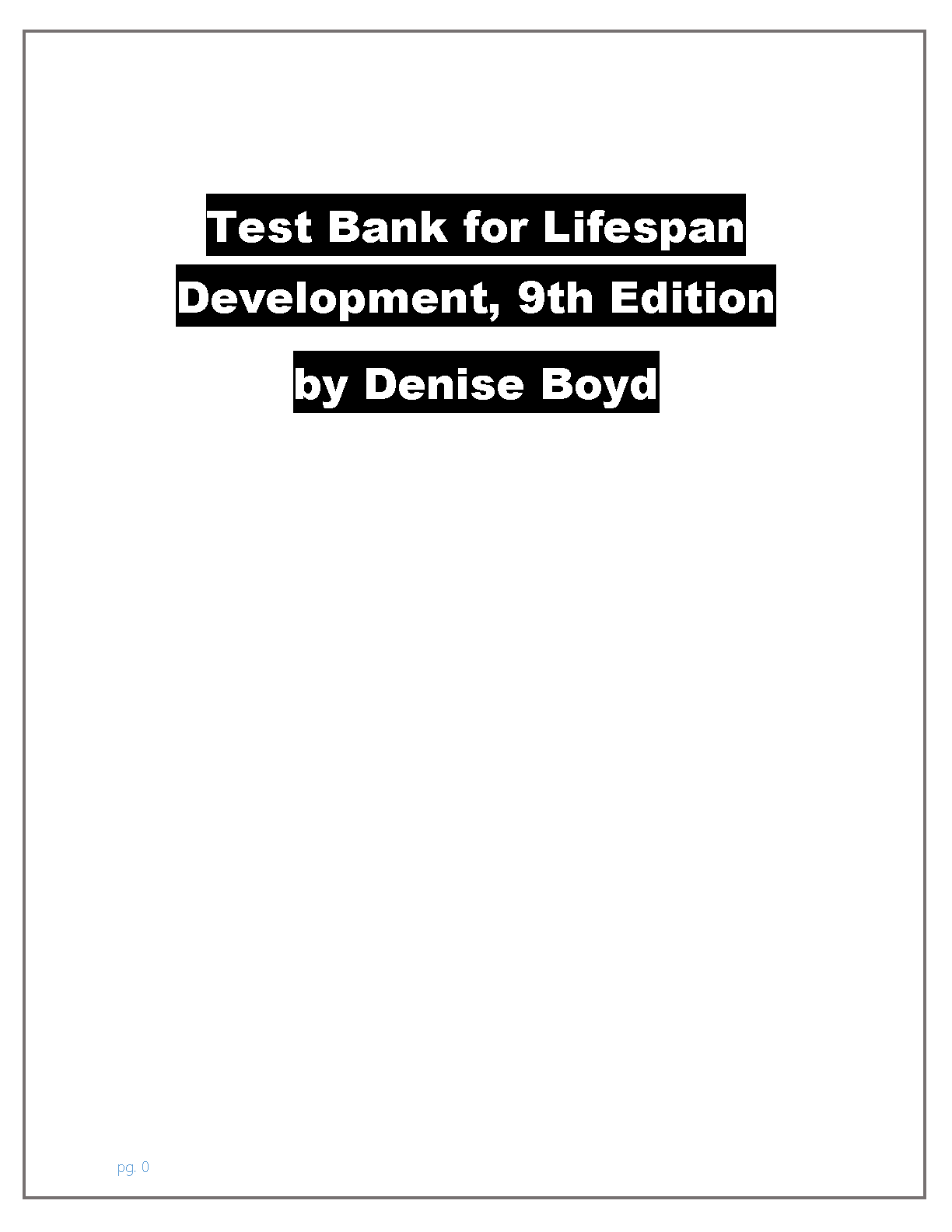 Test Bank for Lifespan Development, 9th Edition by Denise Boyd