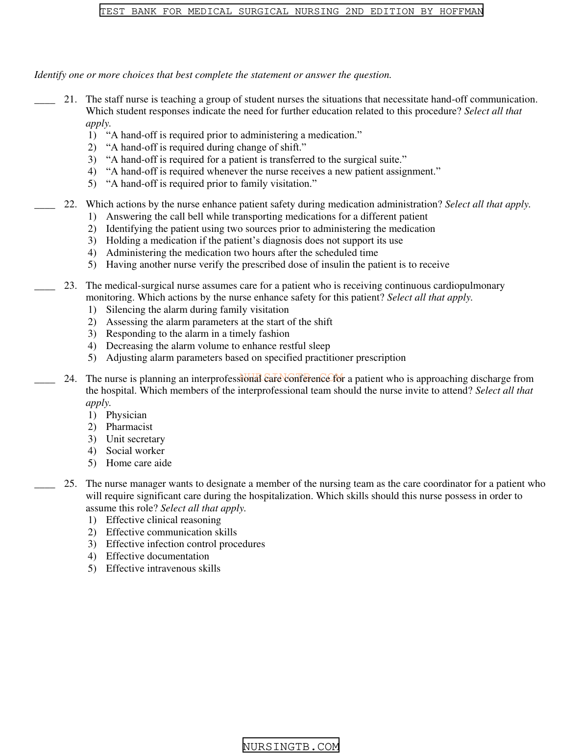 Ace your Medical-Surgical Nursing exams with this comprehensive test bank for Hoffman & Sullivan's 2nd edition. This resource provides in-depth questions and answers to help students master key concepts and achieve exam success on their first attempt.