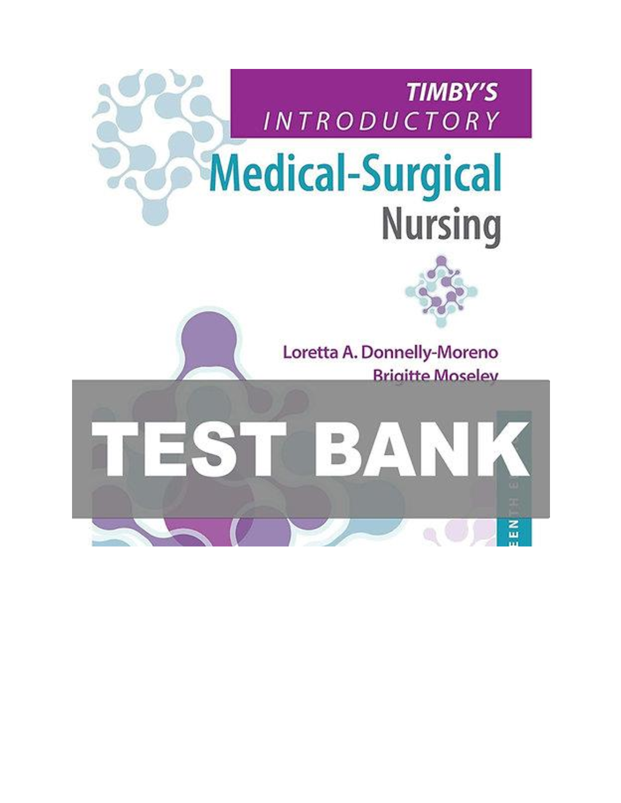 Ace your Medical-Surgical Nursing exams with this comprehensive test bank for Timby's Introductory Medical-Surgical Nursing, 10th Edition. This resource, curate...