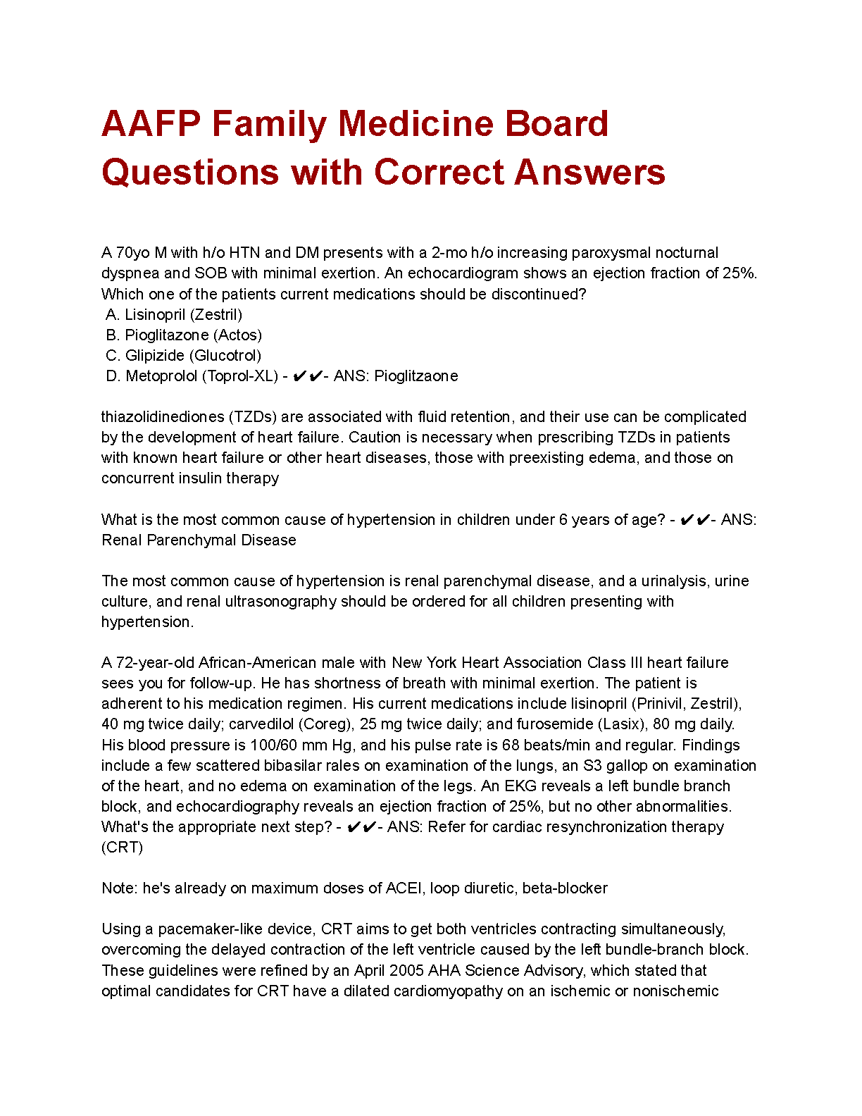 AAFP Family Medicine Board Questions with Correct Answers - 2024/2025 Edition