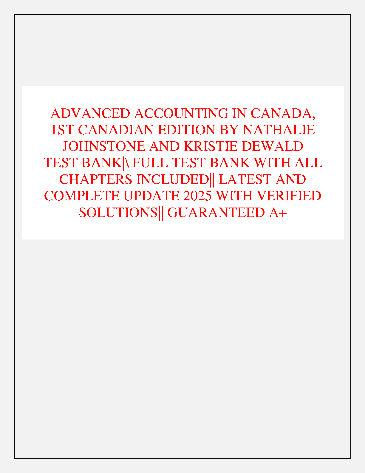 Ace your Advanced Accounting exams with this comprehensive test bank for the 1st Canadian Edition by Nathalie Johnstone and Kristie Dewald. This updated 2024/20...