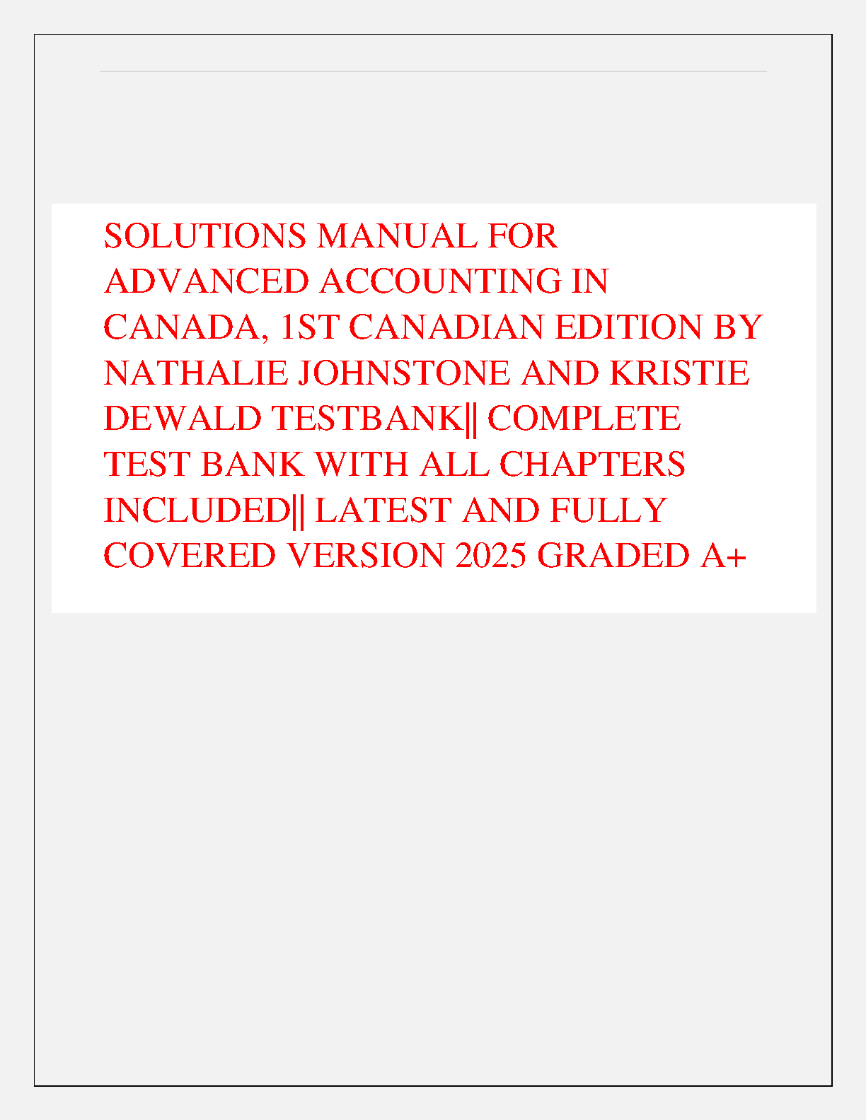 Ace your Advanced Accounting exams with this comprehensive test bank and solutions manual for the 1st Canadian edition by Nathalie Johnstone and Kristie Dewald. This complete, up-to-date resource covers all chapters and is guaranteed to help you achieve an A+ and avoid resits. Prepare for success in the 2024-2025 academic year.