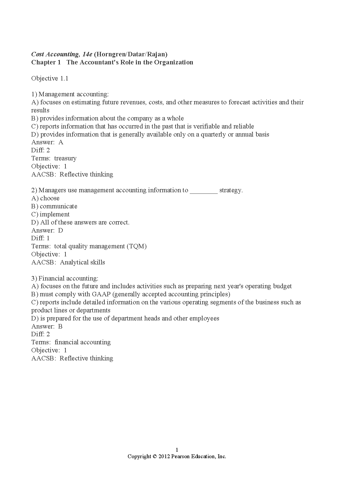 Cost Accounting 14e by Horngren, Datar, and Rajan: Solutions Manual