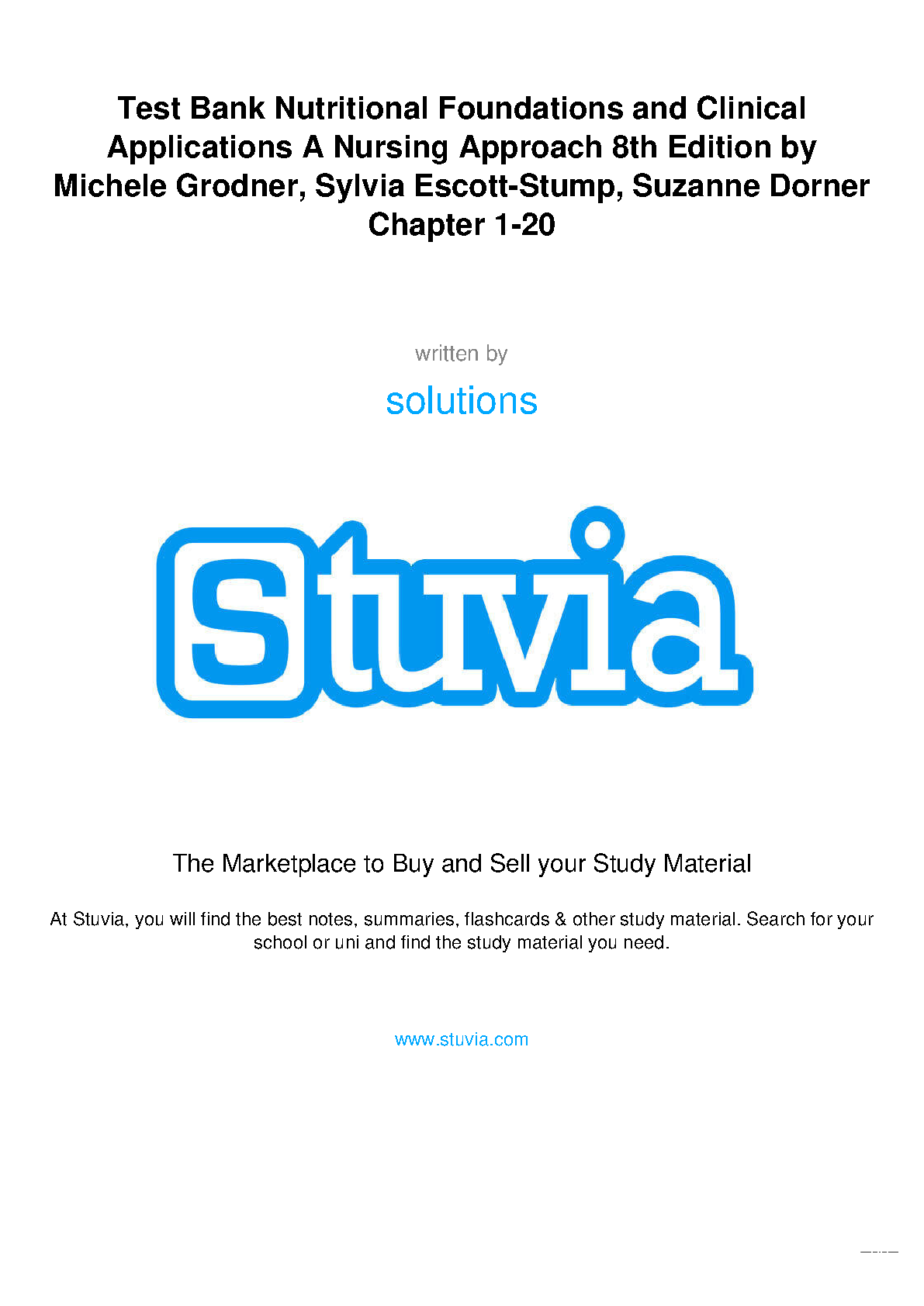Test Bank: Nutritional Foundations & Clinical Applications - A Nursing Approach, 8th Edition by Michele Grodner, Sylvia Escott-Stump, Suzanne Dorner