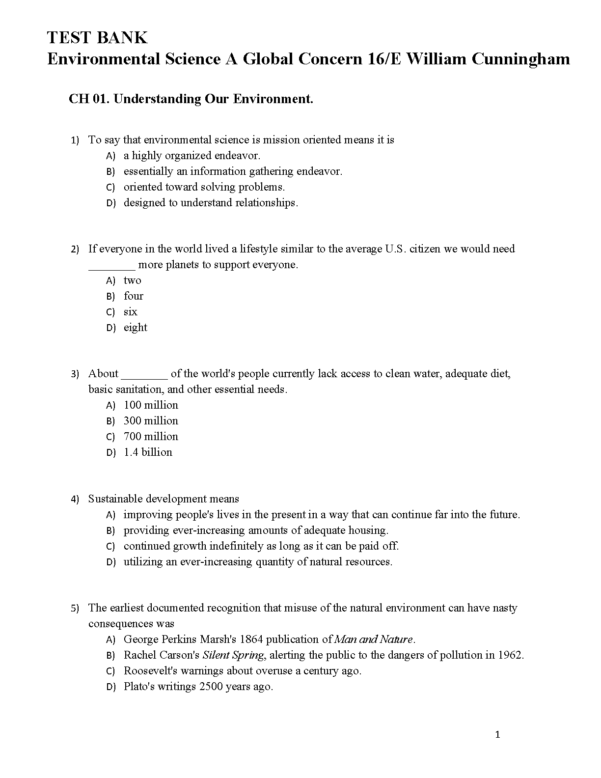 Environmental Science: A Global Concern, 16th Edition Test Bank - William P. Cunningham & Mary Ann Cunningham