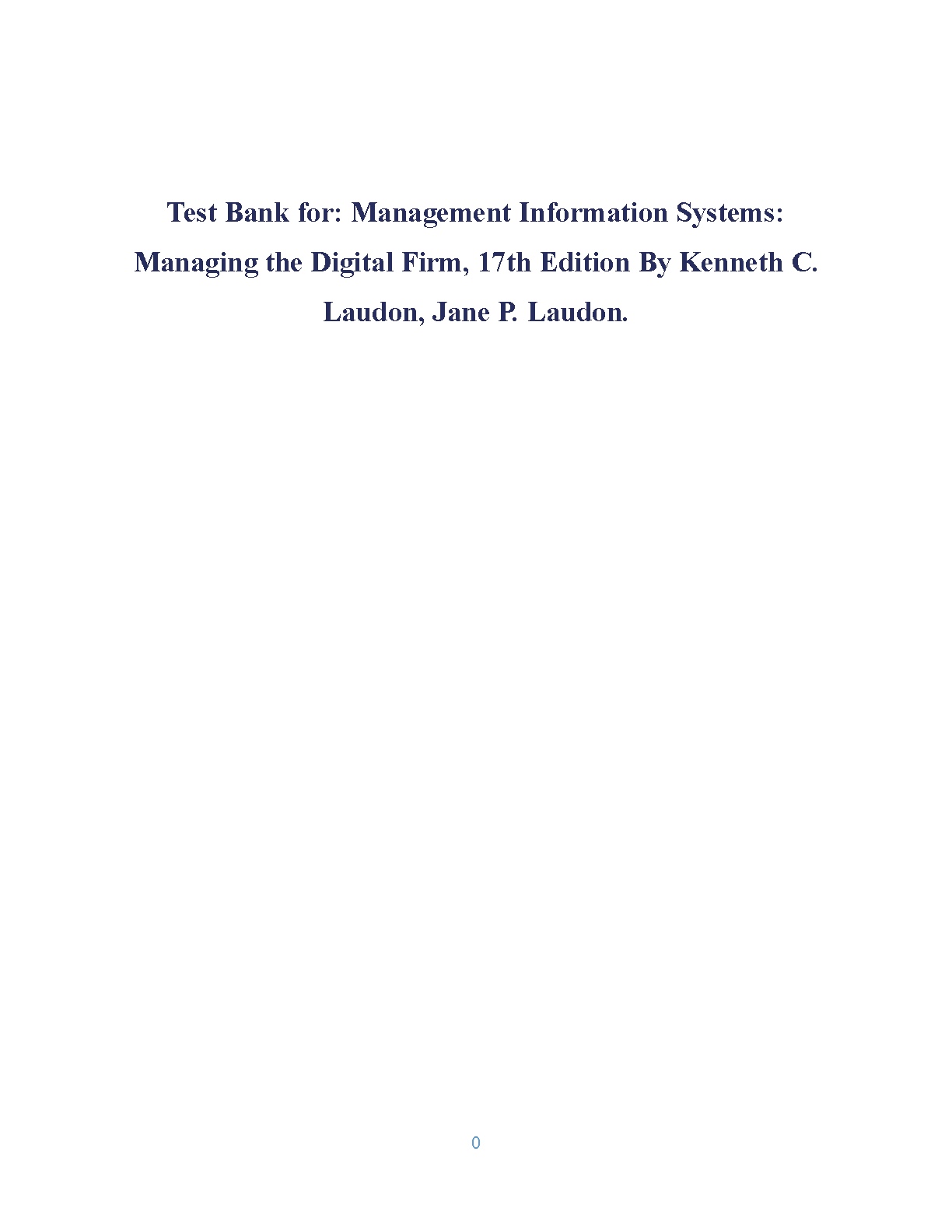 Test Bank for Management Information Systems: Managing the Digital Firm, 17th Edition by Kenneth C. Laudon and Jane P. Laudon