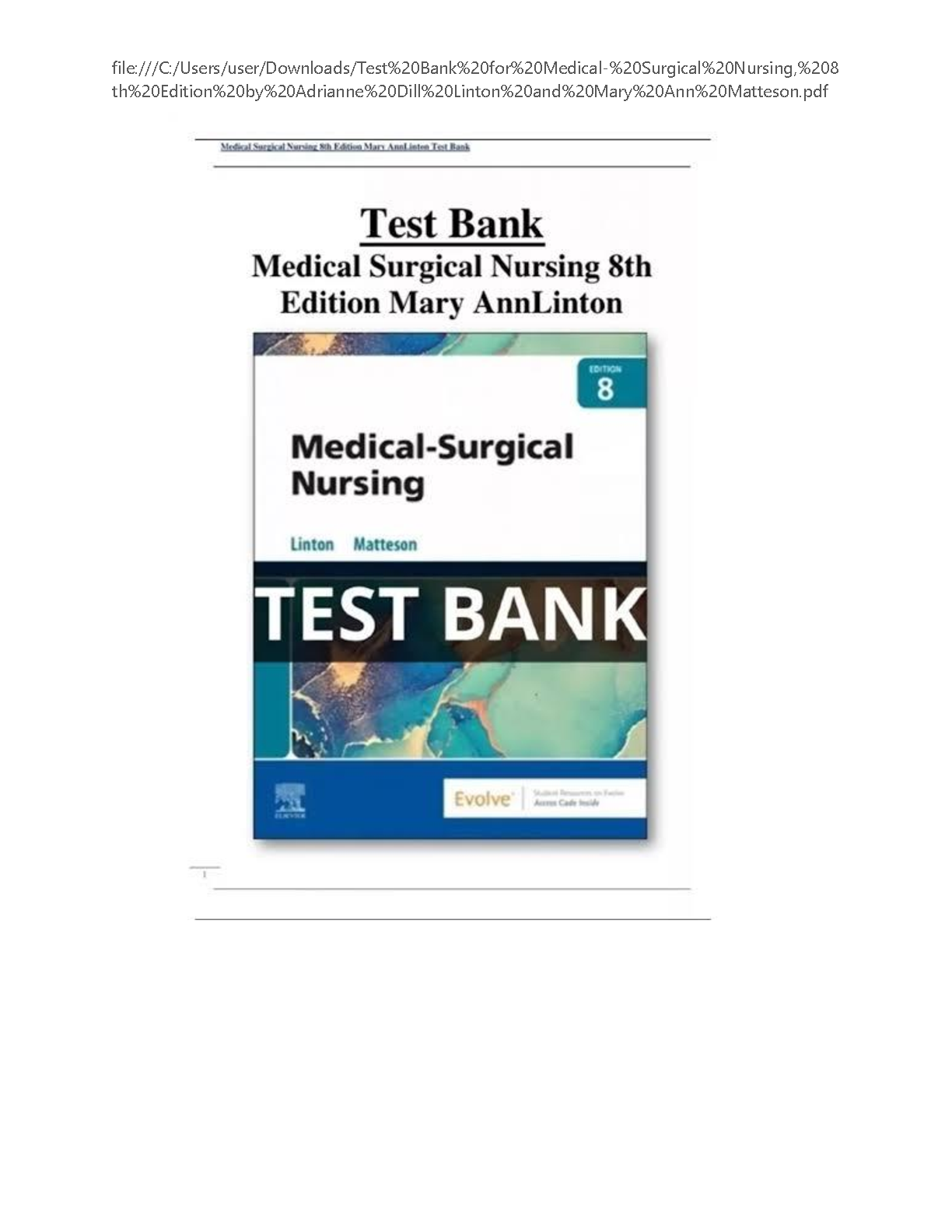 Medical-Surgical Nursing 8th Edition Test Bank by Mary Ann Linton and Adrianne Dill Linton