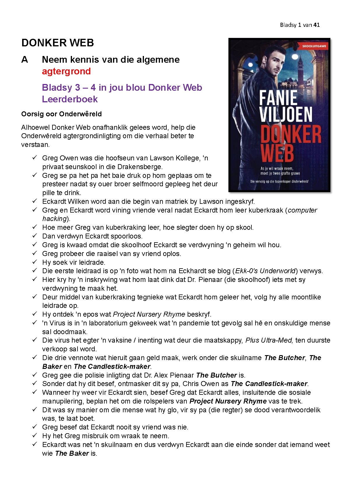 Donker Web: Bladsy 3-4 Leerderboek - Fanie Viljoen