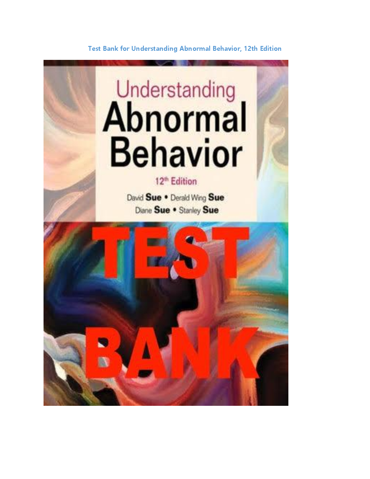 Ace your exams with this comprehensive test bank for Understanding Abnormal Behavior, 12th Edition, by David Sue, Derald Wing Sue, Diane Sue, and Stanley Sue. T...