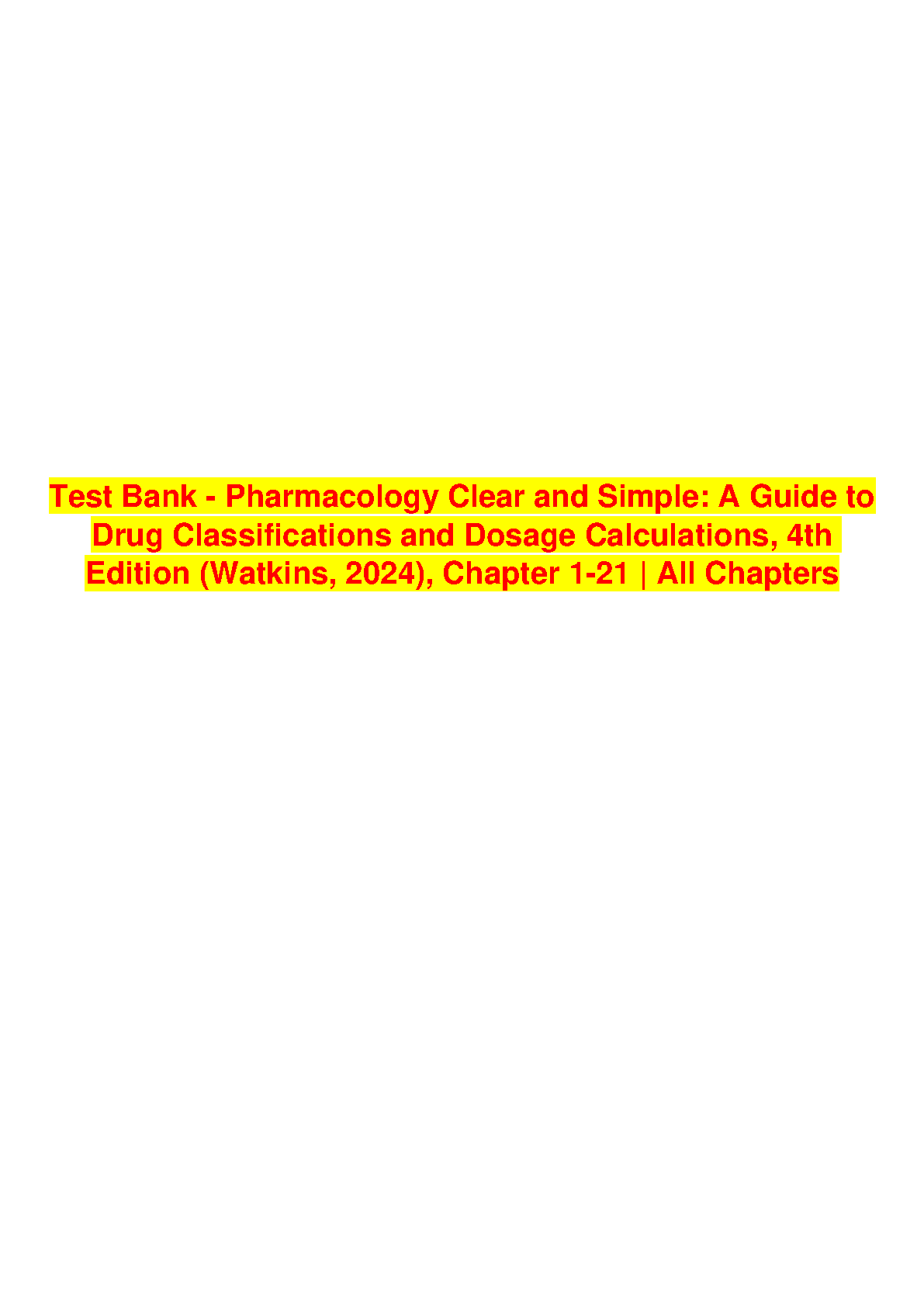 Pharmacology Clear and Simple: A Guide to Drug Classifications and Dosage Calculations, 4th Edition Test Bank - Complete Solution Manual by Susan Watkins