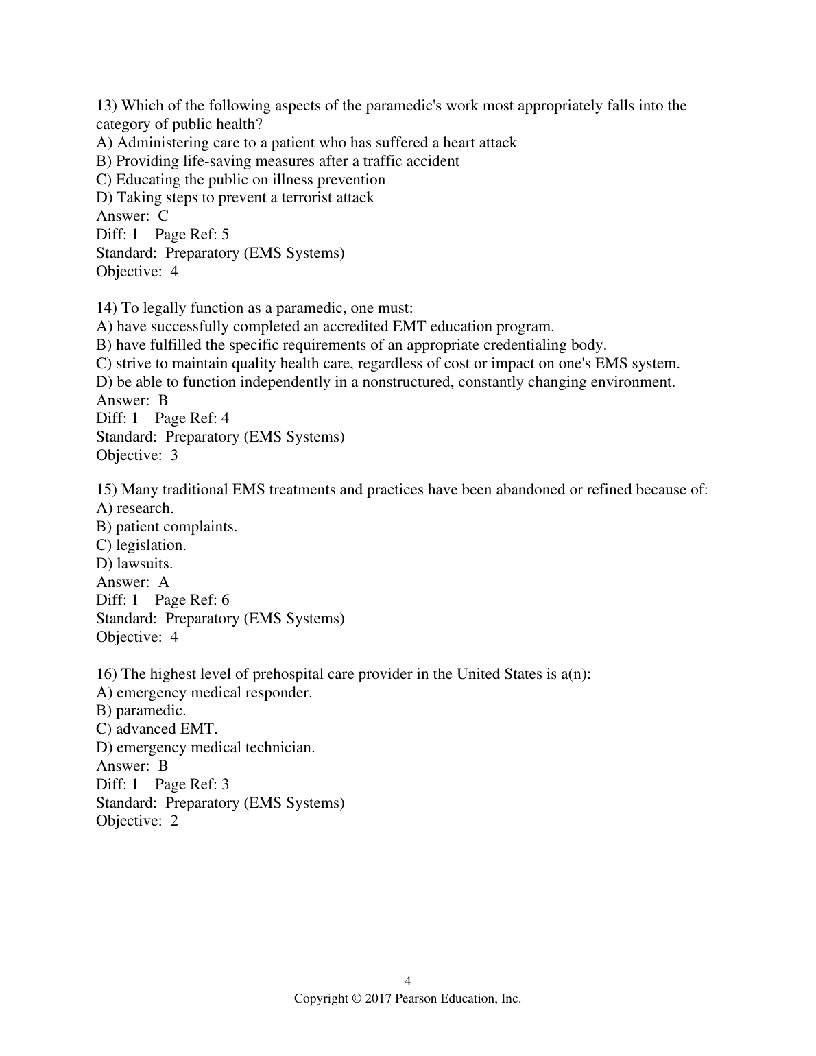 Ace your Paramedicine exams with this comprehensive test bank for Bledsoe et al.'s Paramedic Care: Principles & Practice, 5th edition. This resource is designed to help students master the material and pass their exams on the first attempt, avoiding costly resits. Prepare effectively for your upcoming exams and boost your confidence with this invaluable study aid.