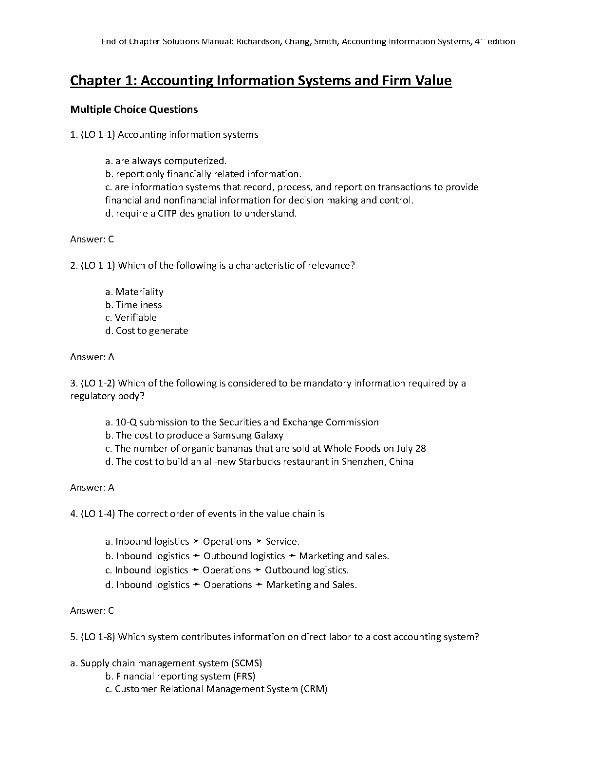 Accounting Information Systems and Firm Value by Richardson, Chang, and Smith - 4th Edition Solutions Manual