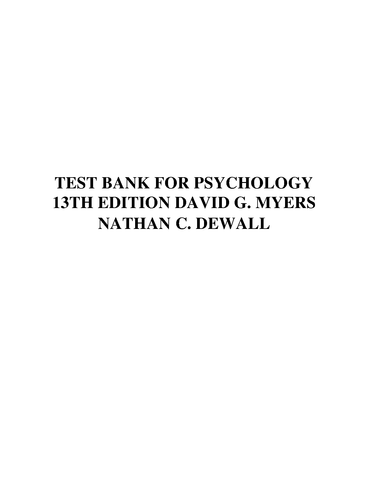 Psychology Test Bank: 13th Edition by David G. Myers & Nathan C. DeWall