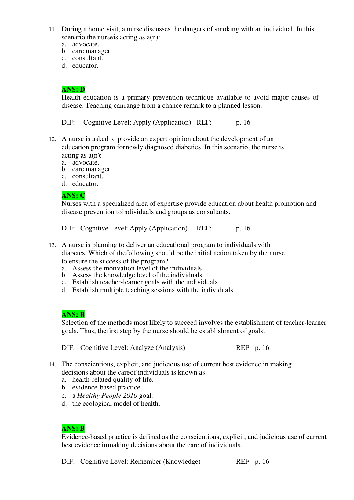 Health Promotion Throughout the Life Span 9th Edition Test Bank by Carole Edelman and Elizabeth Kudzma