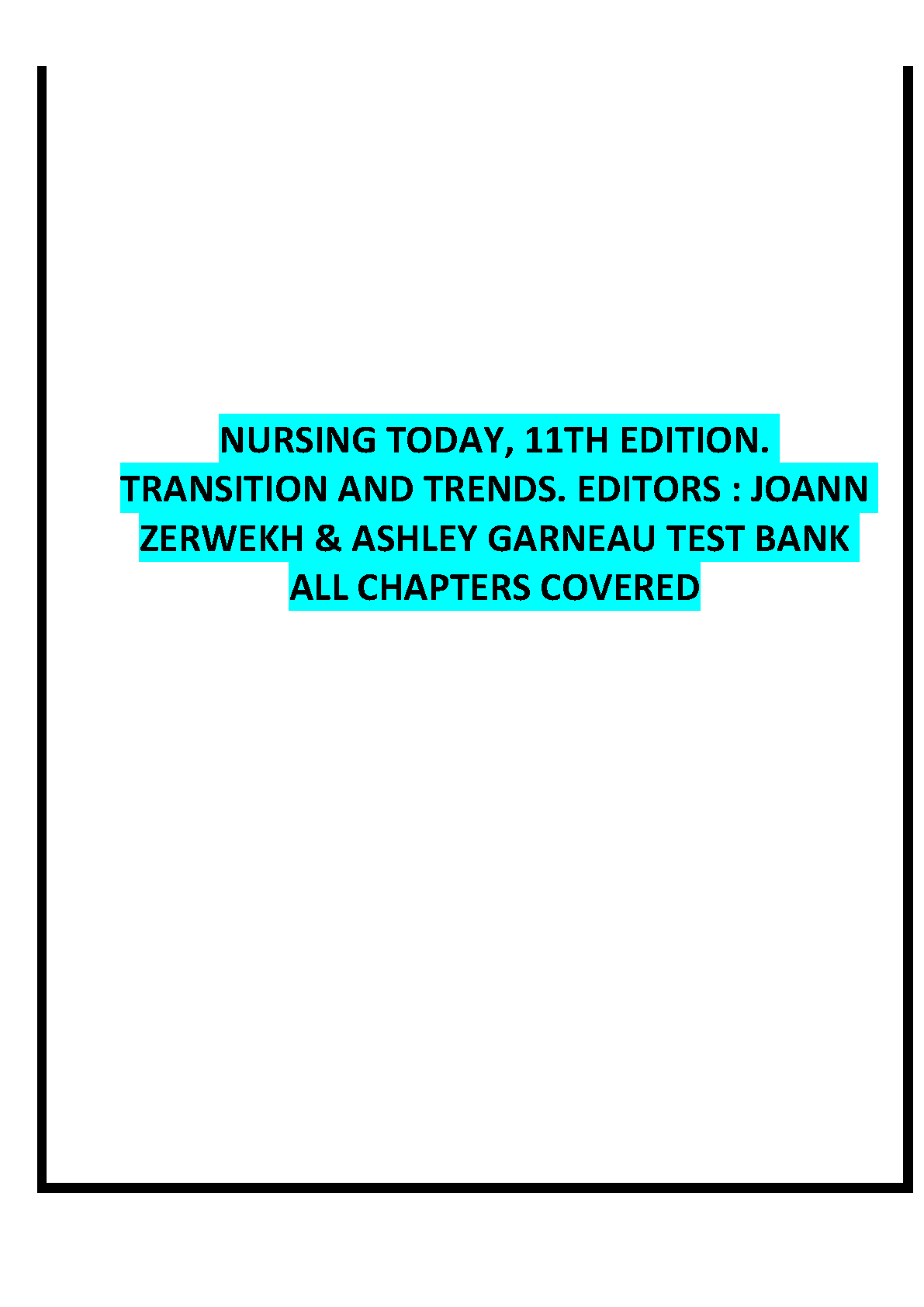 Nursing Today, 11th Edition: Transition and Trends Test Bank by Joann Zerwekh & Ashley Garneau - Ace Your Exams!