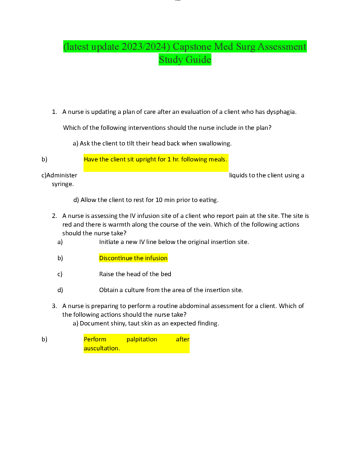 Ace your Capstone Medical Surgical exam on your first attempt! This comprehensive 2024/2025 study guide provides in-depth coverage of key concepts and practice questions to help you avoid resits. Prepare effectively and confidently for exam day.