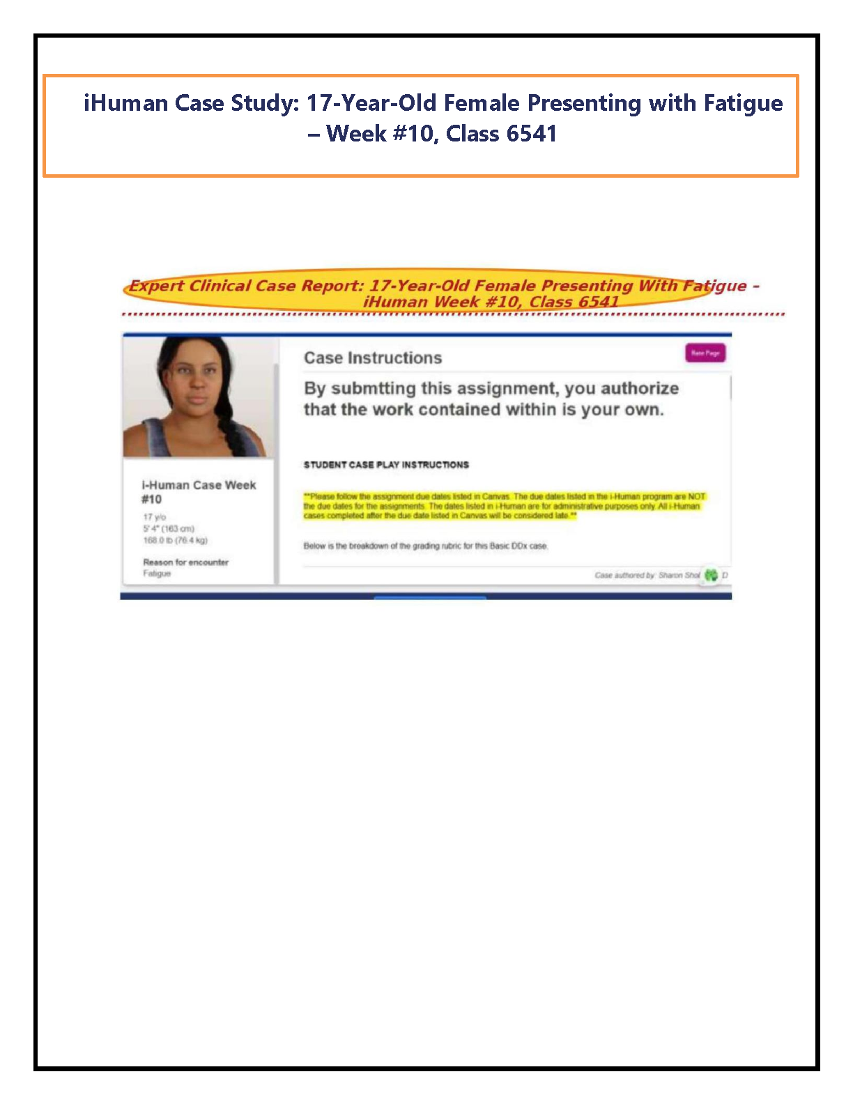 Master the iHuman case study on a 17-year-old female presenting with fatigue. This comprehensive guide covers week 10 of class 6541, offering expert insights an...