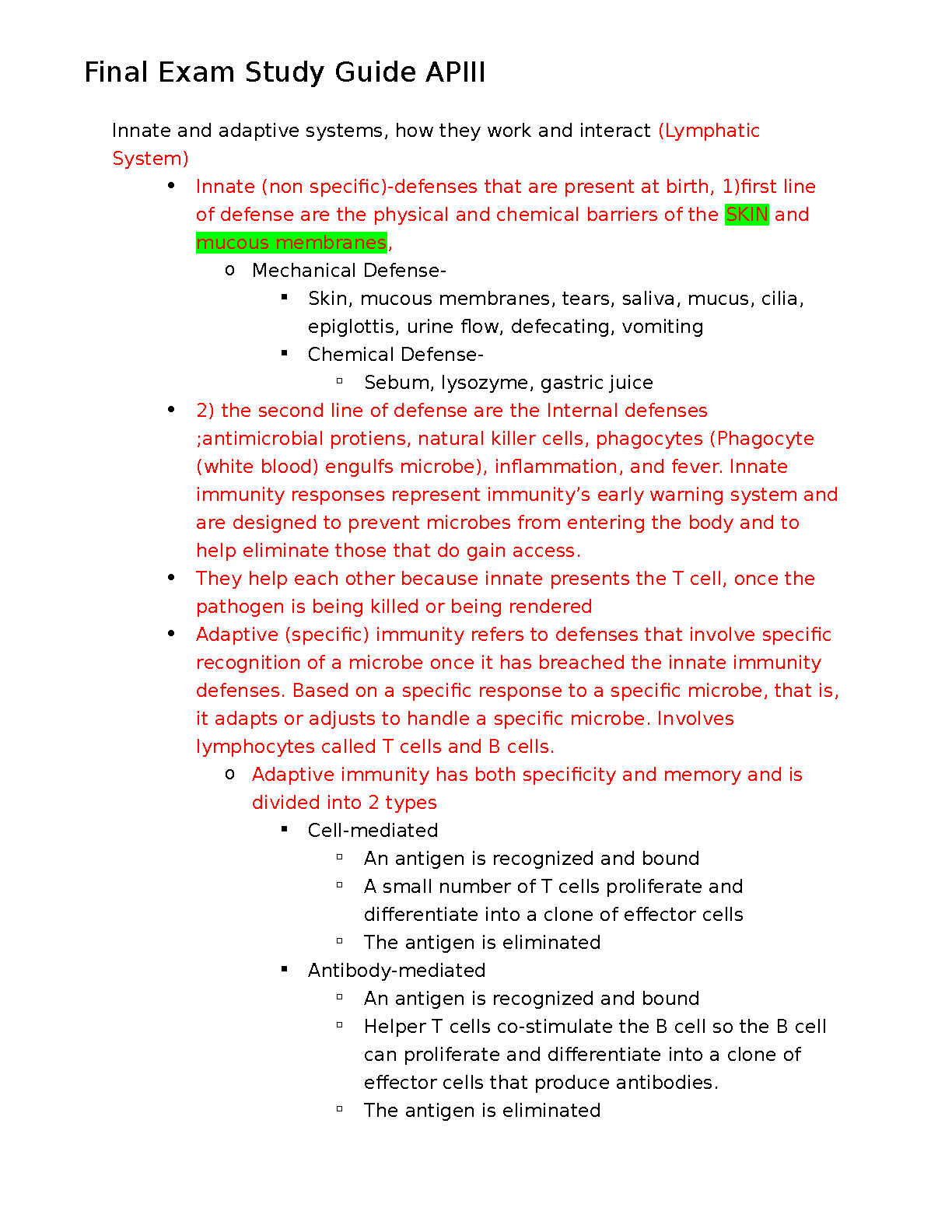 APIII Final Exam Study Guide: Mastering Innate and Adaptive Immunity for Exam Success