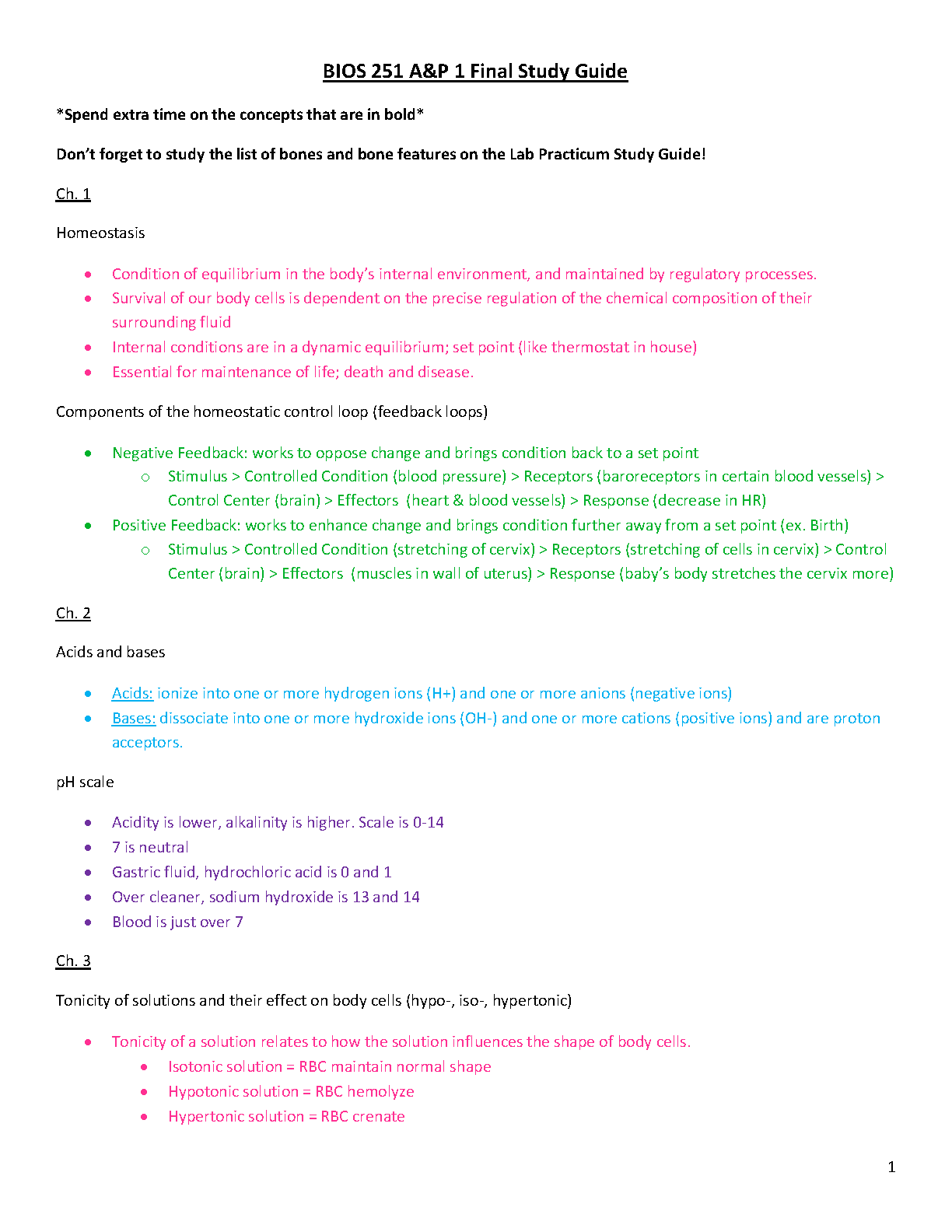 Conquer your BIOS 251 A&P 1 exams with this comprehensive study guide, designed to help you master key concepts and ace your exams the first time around. This guide covers homeostasis, acids and bases, and tonicity, offering clear explanations and practice questions to ensure success in the 2024/2025 academic year.