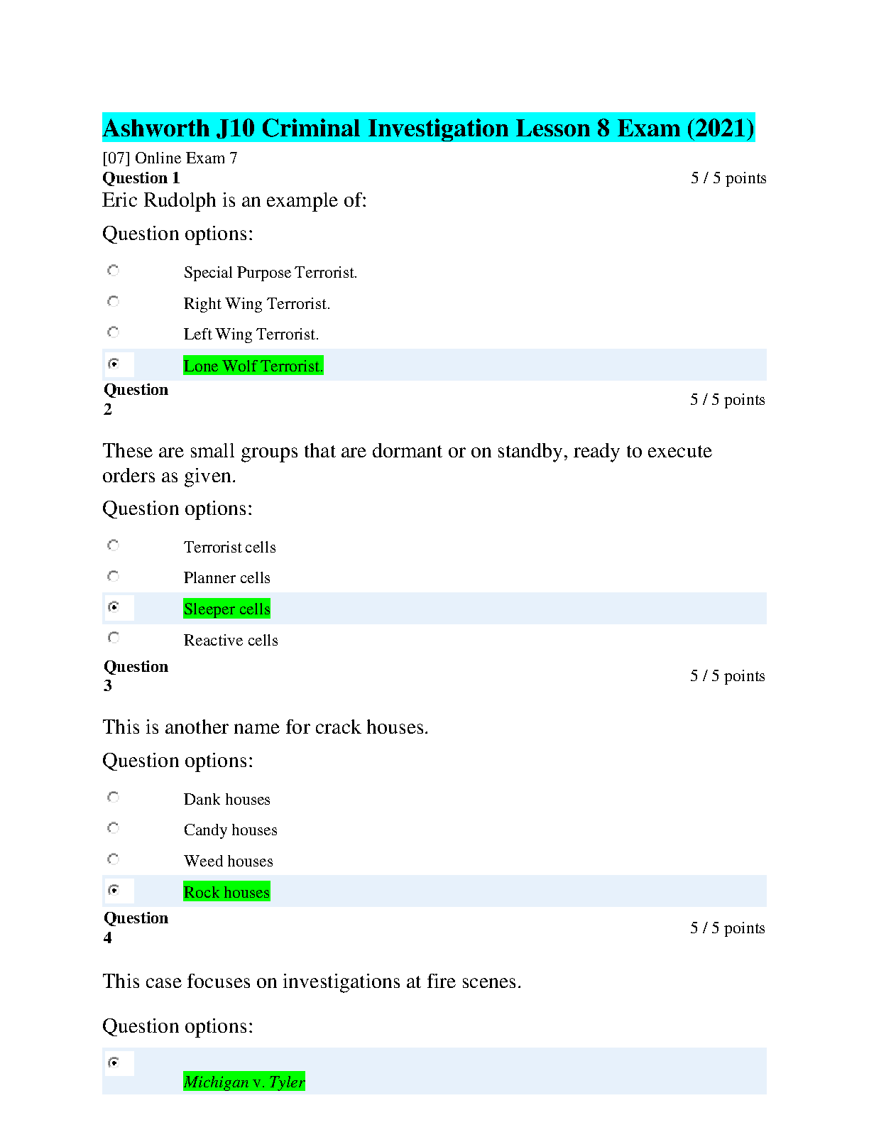 Ashworth College J10 Criminal Investigation Lesson 8 Exam (2021) - Questions and Answers