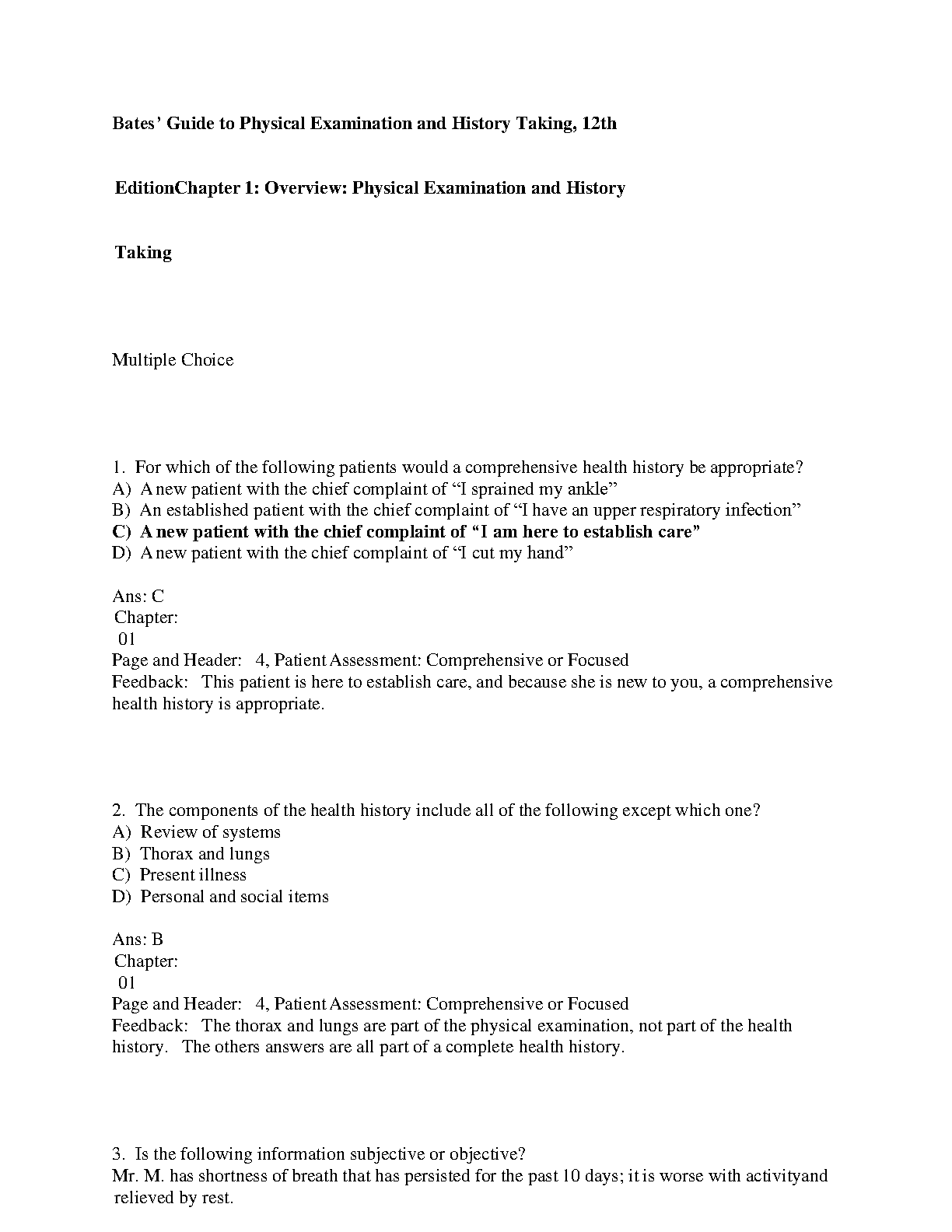 Bates' Guide to Physical Examination and History Taking, 12th Edition: Test Bank by Bickley, Szilagyi, and Hoekelman