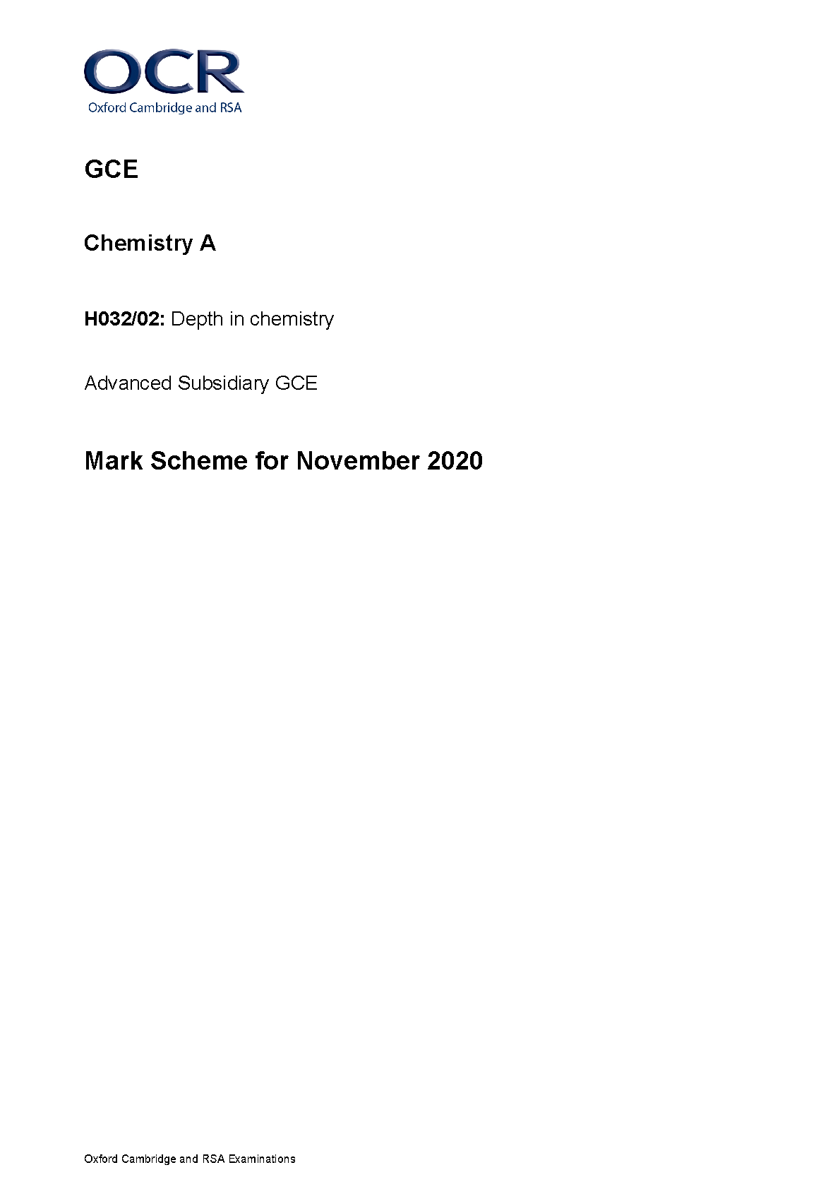 OCR Chemistry A H032/02 Mark Scheme: November 2020 Exam Paper