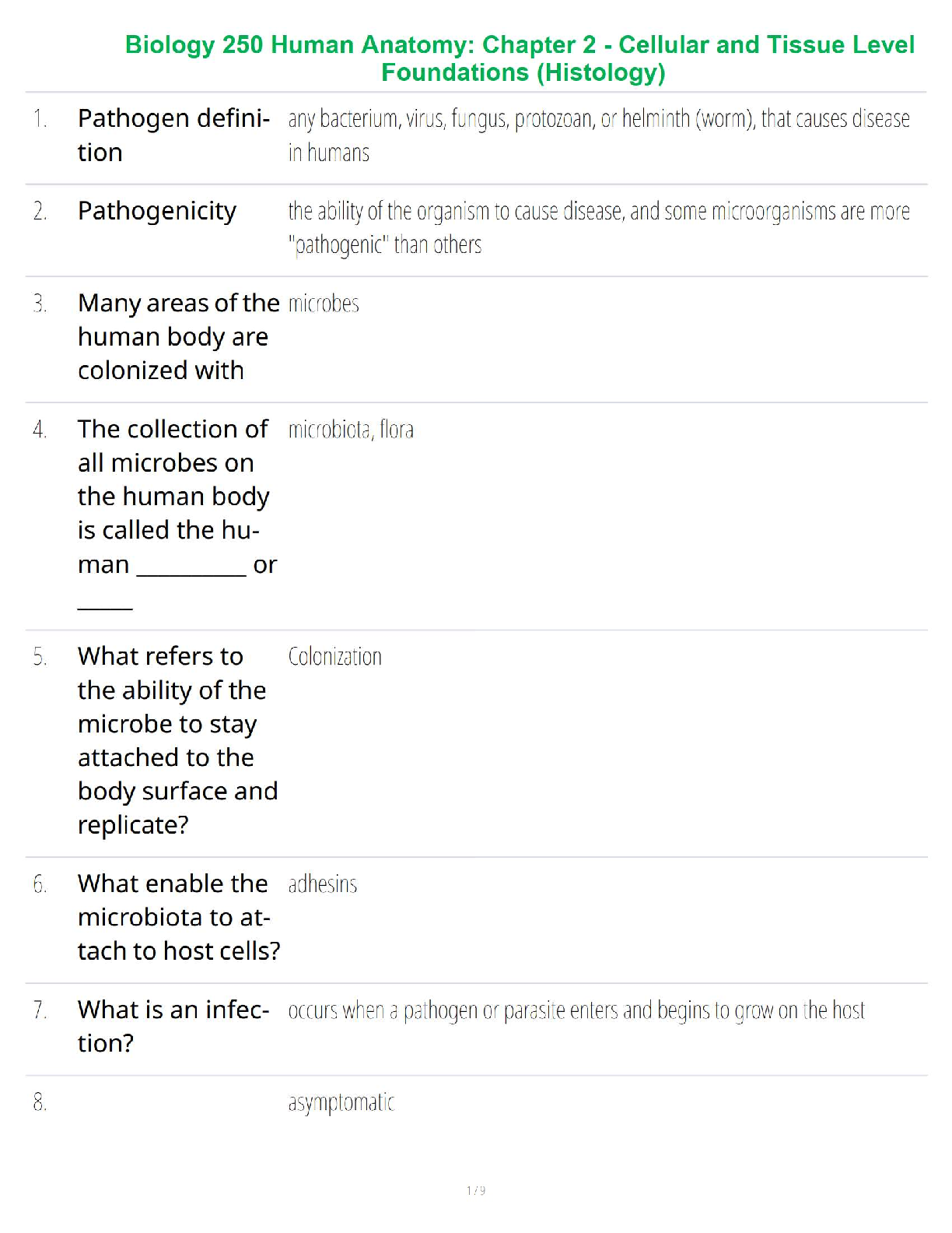 Ace your Biology 250 exams on the first attempt with this comprehensive guide to Chapter 2: Cellular and Tissue Level Foundations (Histology). This resource is specifically designed for the 2024/2025 academic year and covers all essential topics to ensure exam success and avoid resits. Master key concepts such as pathogen definition, pathogenicity, colonization, and more!