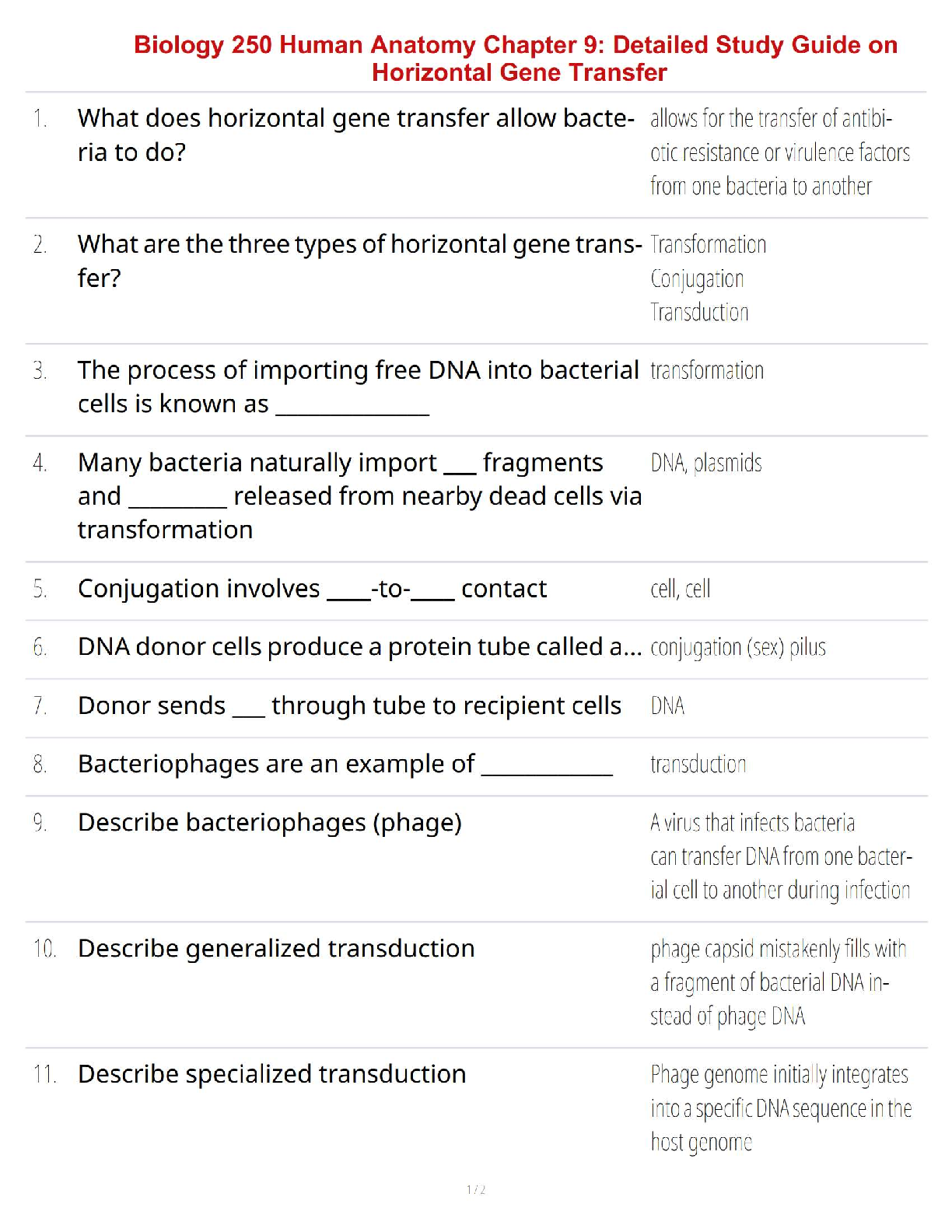Biology 250 Human Anatomy Chapter 9: Detailed Study Guide on Horizontal Gene Transfer - 2024/2025 Edition