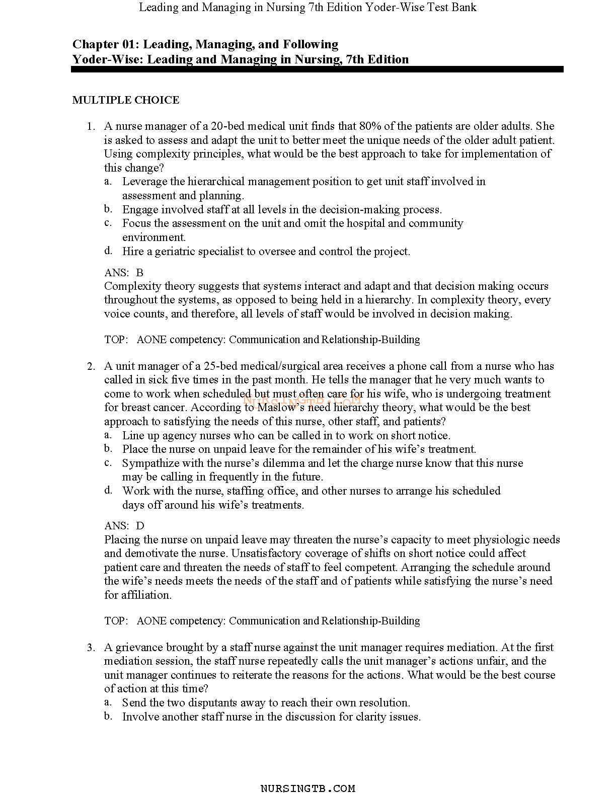 Ace your nursing exams with this comprehensive test bank for Yoder-Wise: Leading and Managing in Nursing, 7th Edition. This resource provides detailed answers and explanations to help you avoid resits and succeed on your first attempt. Gain a deeper understanding of key concepts and master exam material. Perfect for 2024/2025 academic year.