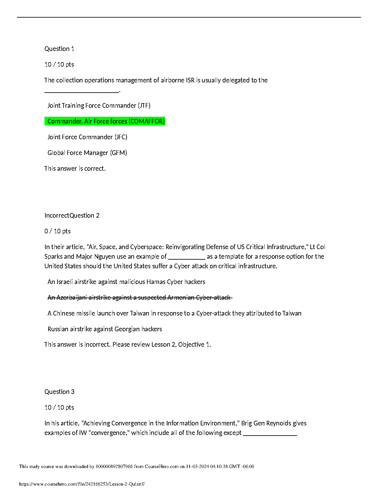 This comprehensive guide covers key concepts in national security, focusing on topics like airborne ISR management, cyber warfare responses, and information environment convergence. Prepare effectively for your exams and avoid resits with this expertly curated resource designed to help students pass on their first attempt. Ideal for 2024/2025 academic year.