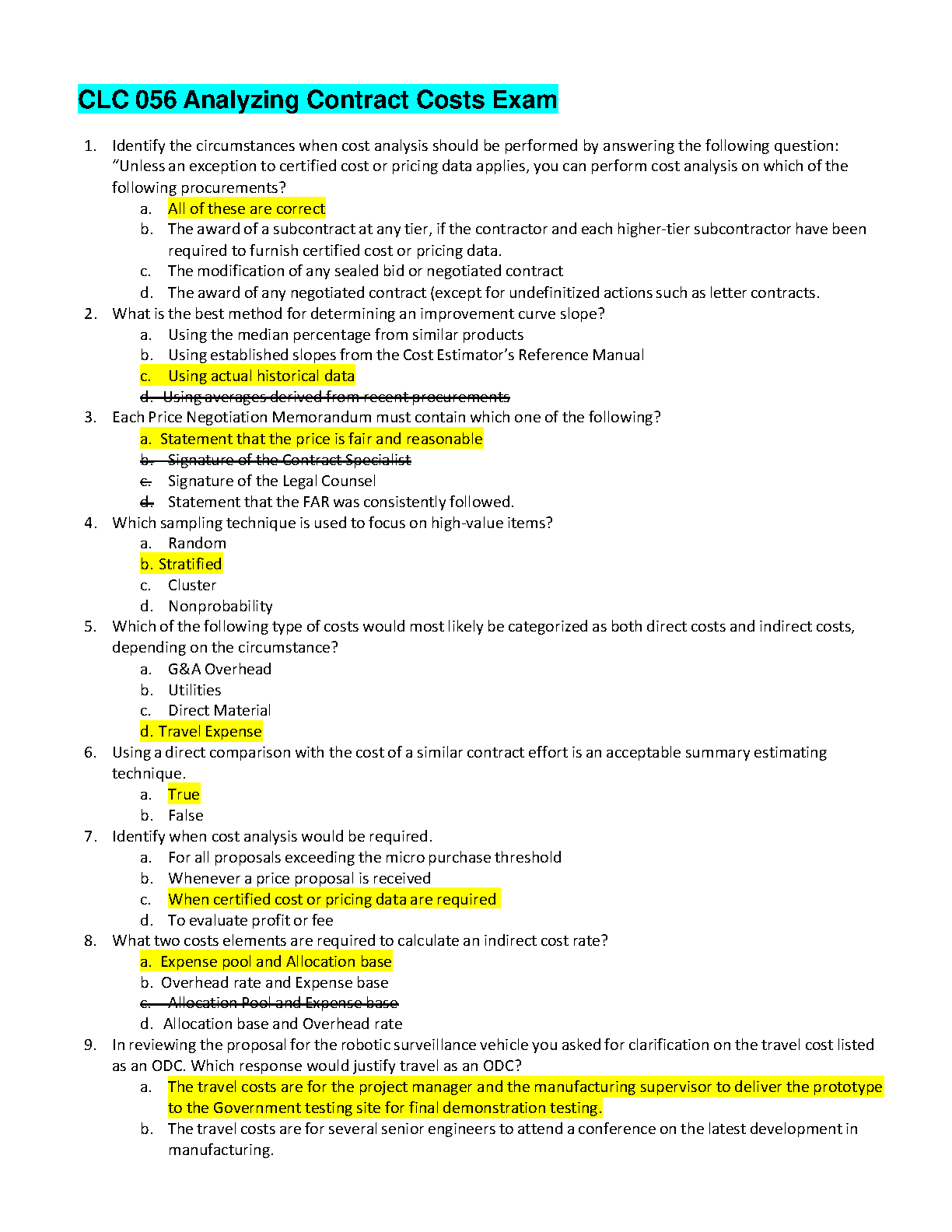 Ace your CLC 056 Analyzing Contract Costs exam with this comprehensive guide designed for the 2024/2025 academic year. This resource helps students master key concepts and pass on their first try, avoiding costly resits. Gain a thorough understanding of contract cost analysis, sampling techniques, direct vs. indirect costs, and more. Prepare effectively and confidently for exam day!