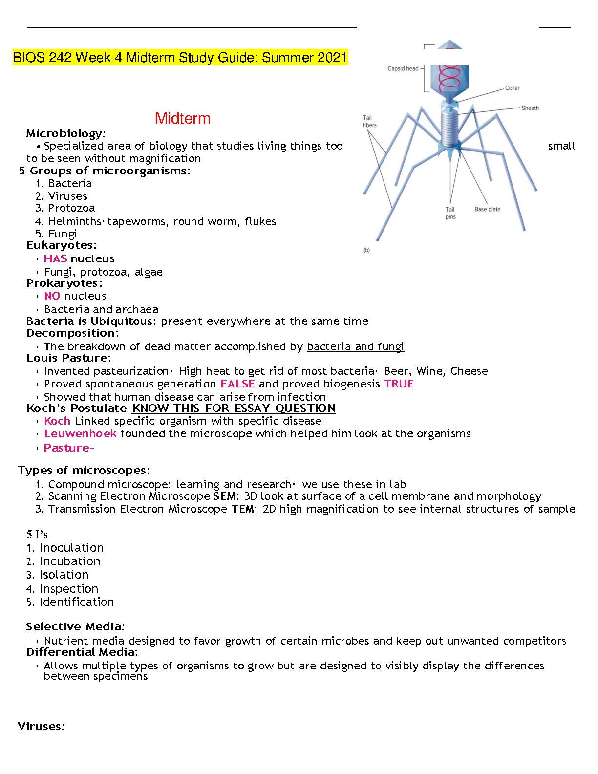 BIOS 242 Week 4 Midterm Study Guide: Summer 2021 Edition