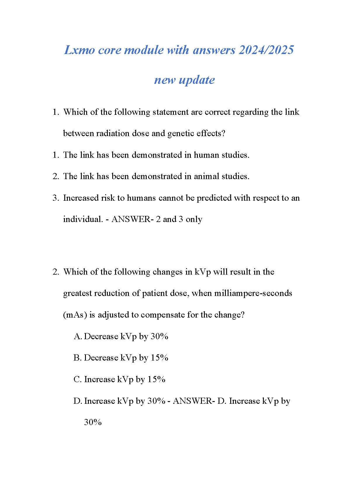 This comprehensive Lxmo core module, updated for the 2024/2025 academic year, provides practice questions and answers to help students master the material and a...