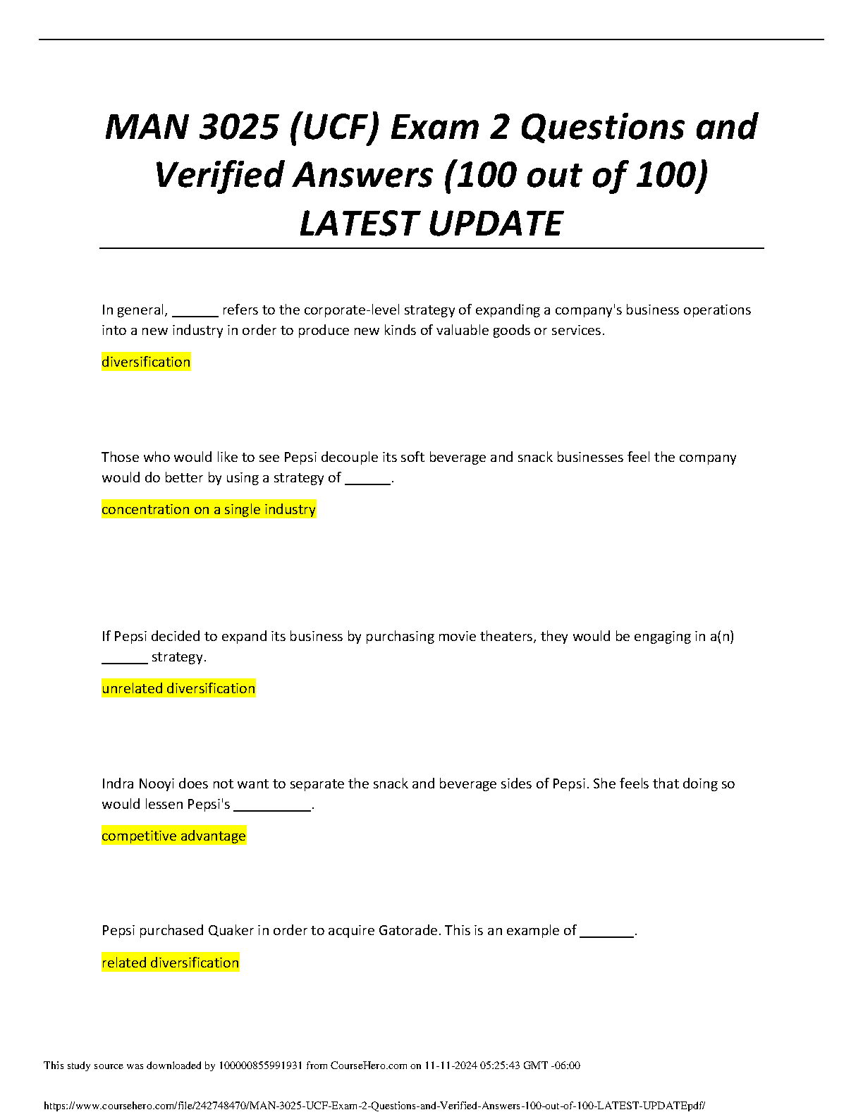 Ace your MAN 3025 Exam at UCF with this comprehensive study guide! This resource provides 100 verified answers to Exam 2 questions, ensuring you pass on your fi...