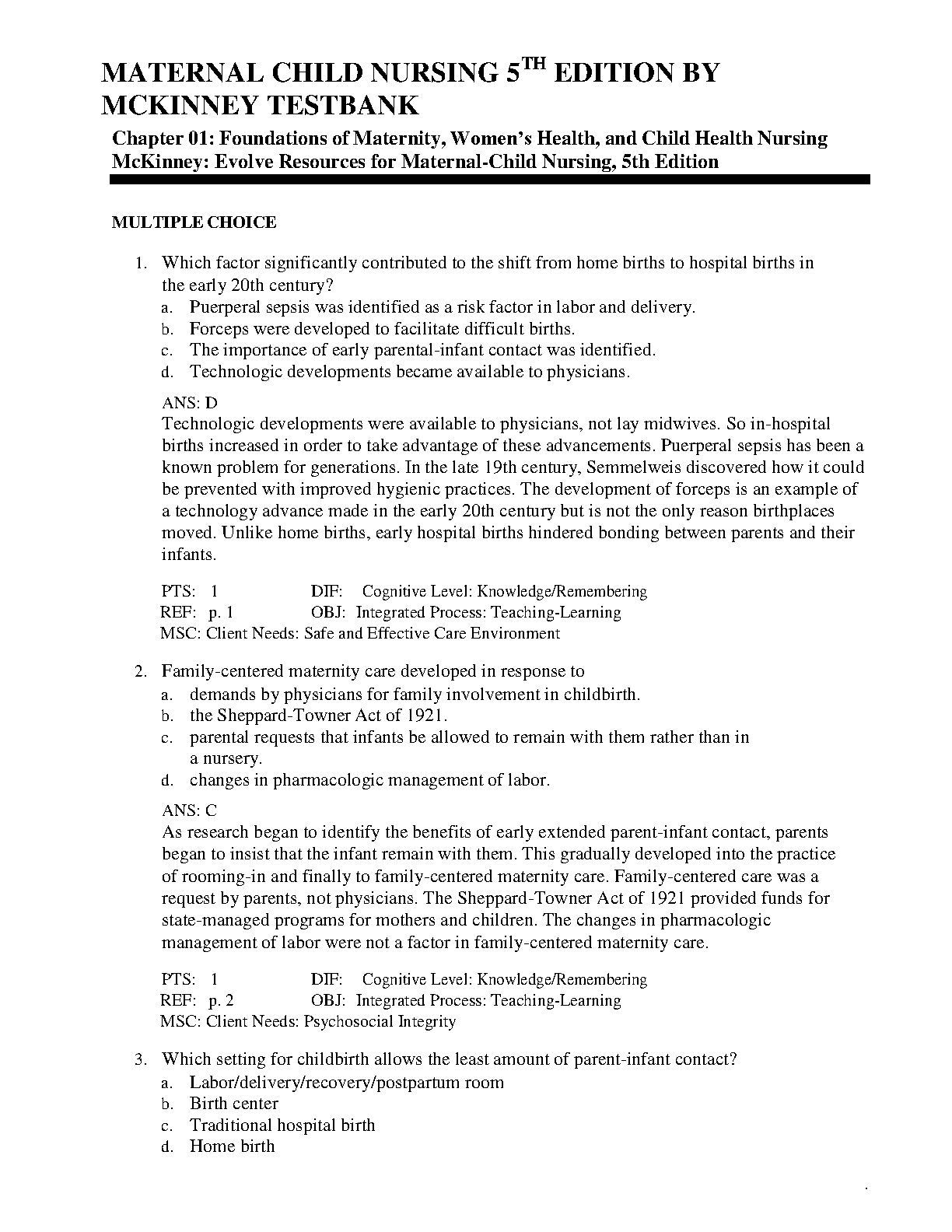 Maternal Child Nursing 5th Edition Test Bank by McKinney et al.
