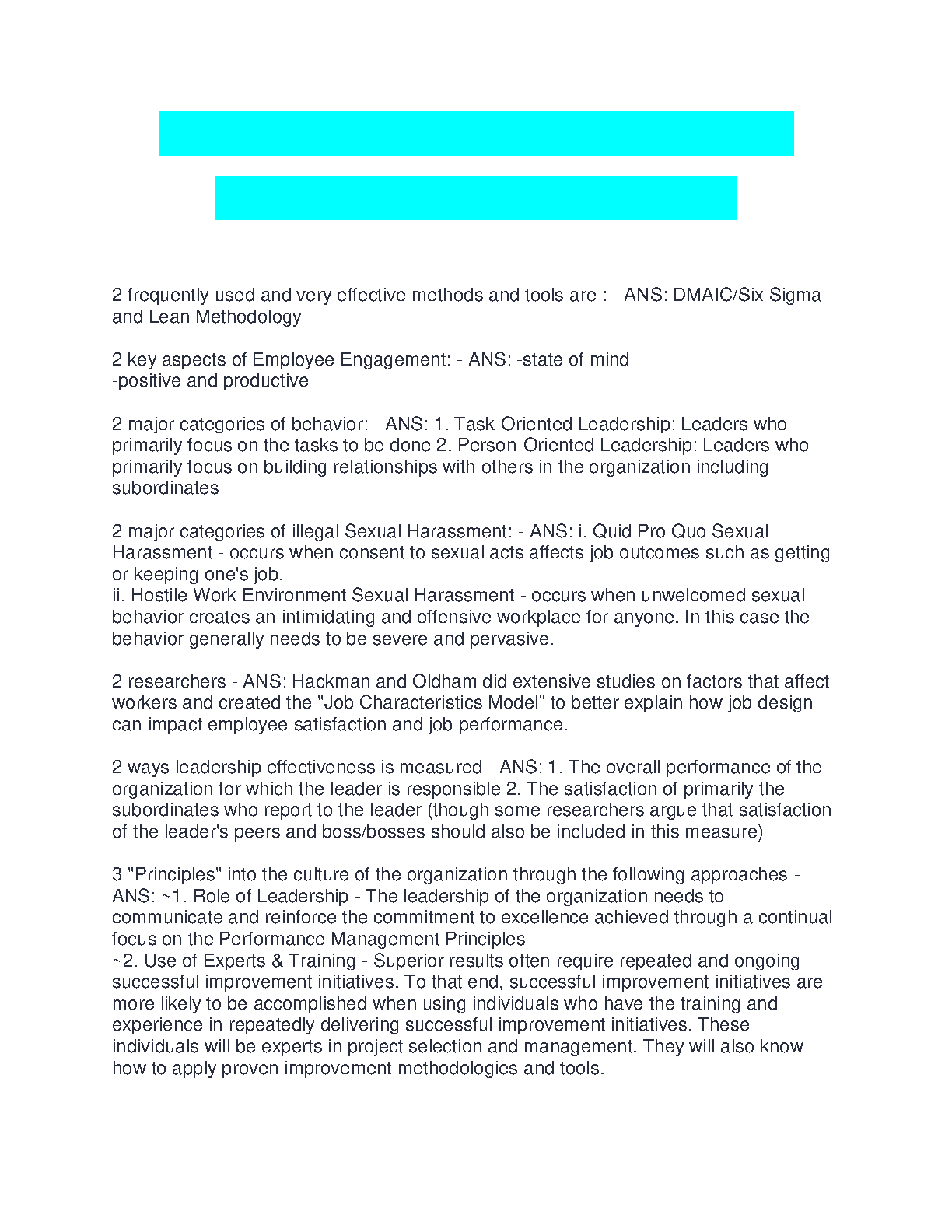 Ace your exams on the first try! This comprehensive guide provides clear explanations of leadership styles, employee engagement strategies, and sexual harassmen...