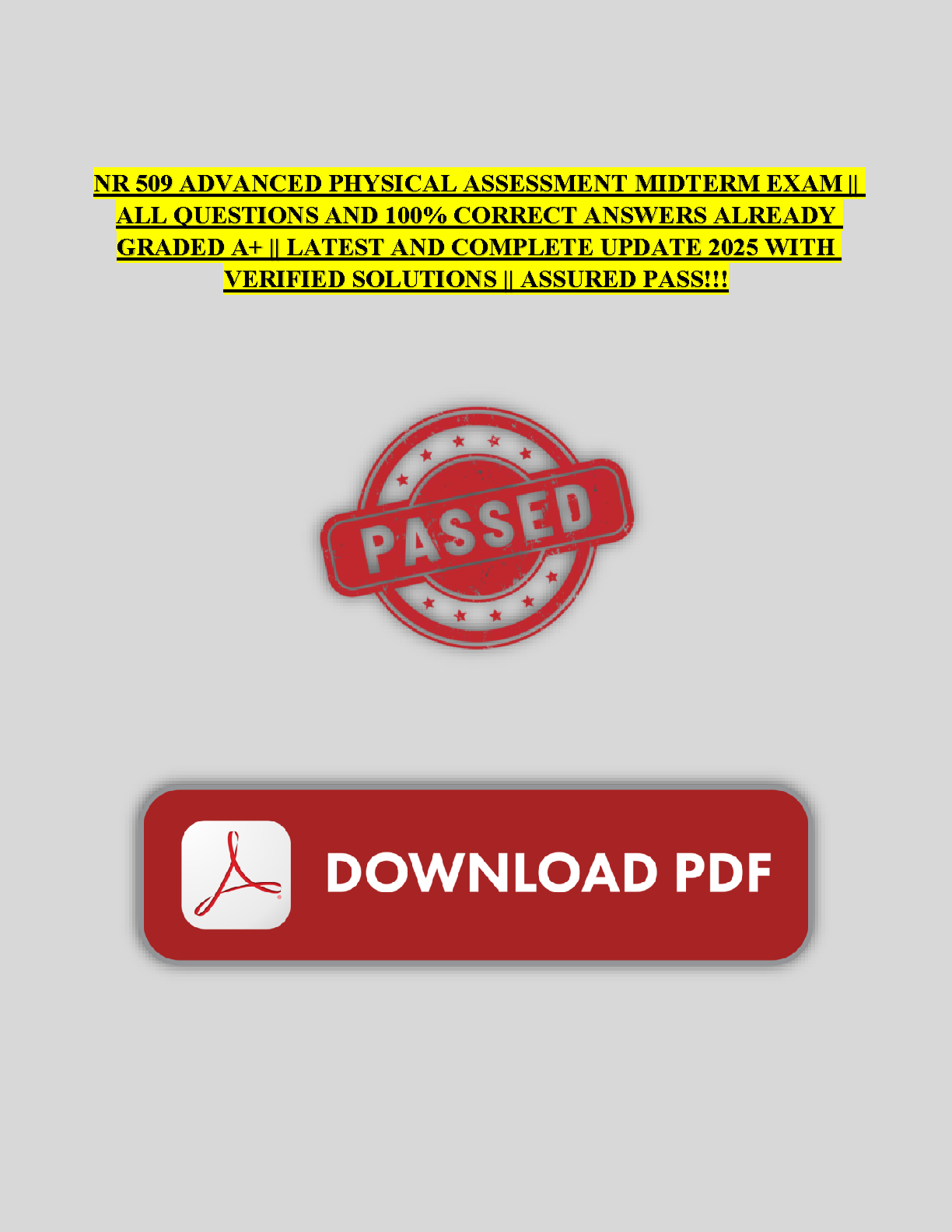 Ace your NR 509 Advanced Physical Assessment midterm exam with this comprehensive study guide. This updated 2025 edition provides 100% correct answers to all qu...
