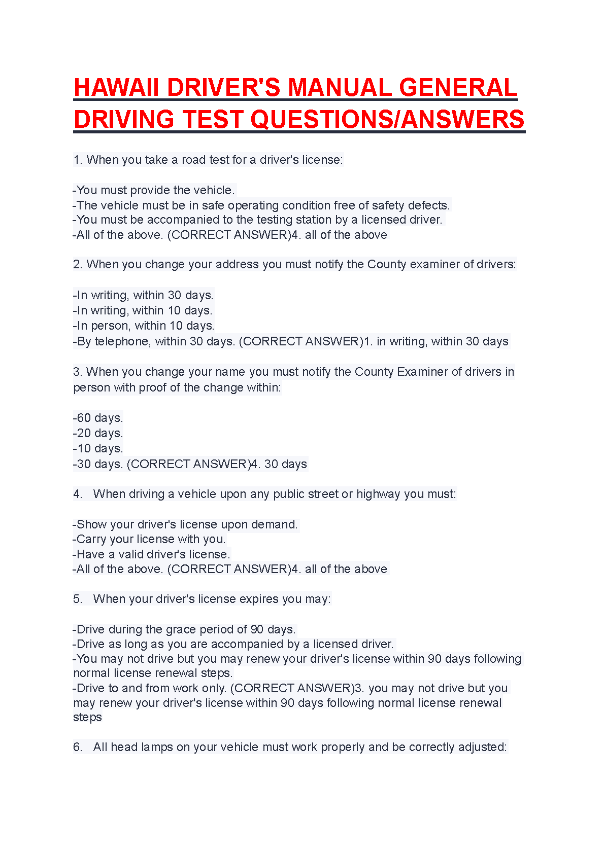 Prepare for your Hawaii driver's license exam with this comprehensive guide covering key driving test questions and answers. Master the material and pass your e...