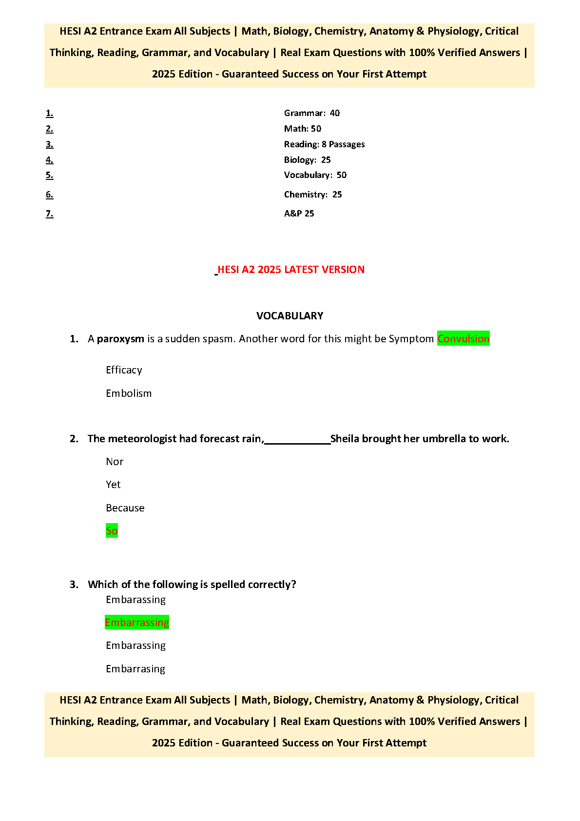 HESI A2 2025 Entrance Exam: Complete Prep Guide with 100% Verified Answers by HESI