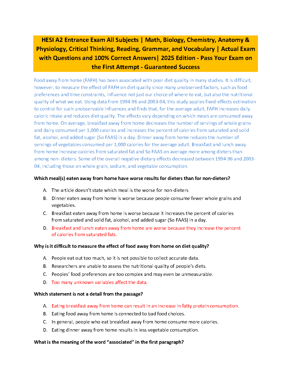 Ace the HESI A2 exam on your first try with this comprehensive 2025 edition study guide. This resource features 100% accurate answers, ensuring success and avoi...