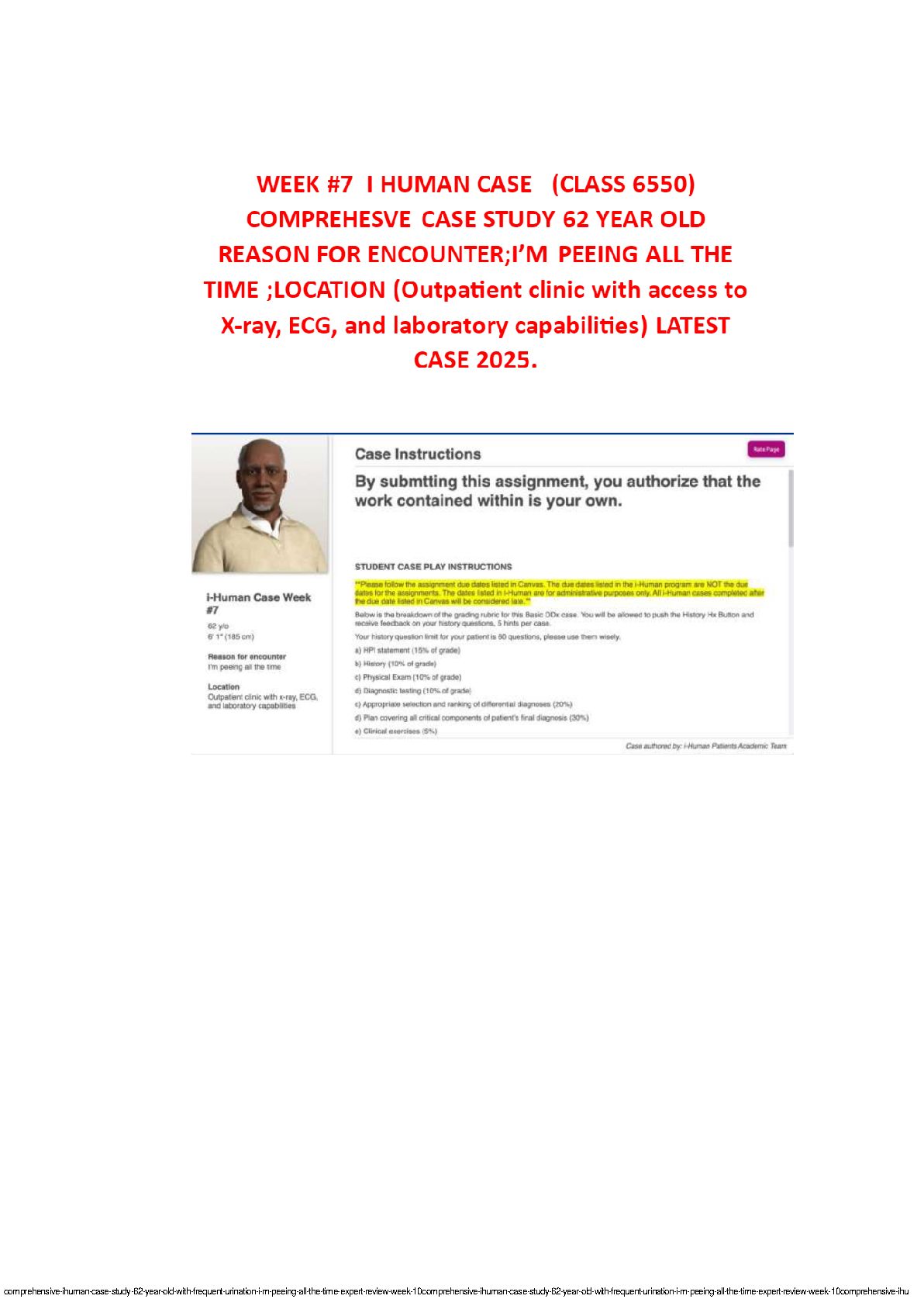 iHuman Case Study 2025: Comprehensive Case Study for a 62-Year-Old Patient with Frequent Urination - Week 7 Edition
