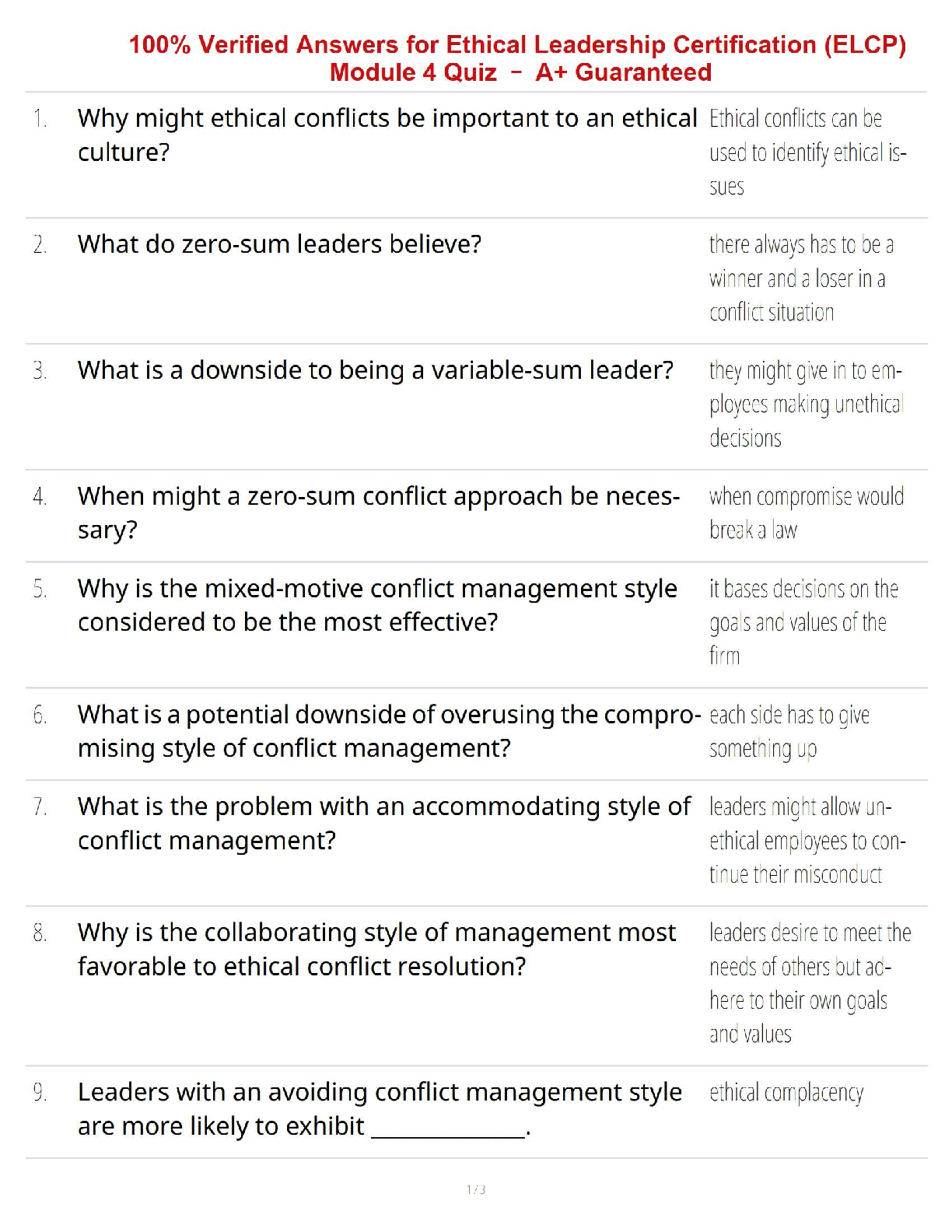 Ace your Ethical Leadership Certification (ELCP) Module 4 quiz with our comprehensive 100% verified answers. These solutions guarantee an A+ and help you master ethical conflict management strategies. Avoid resits and achieve exam success on your first attempt!