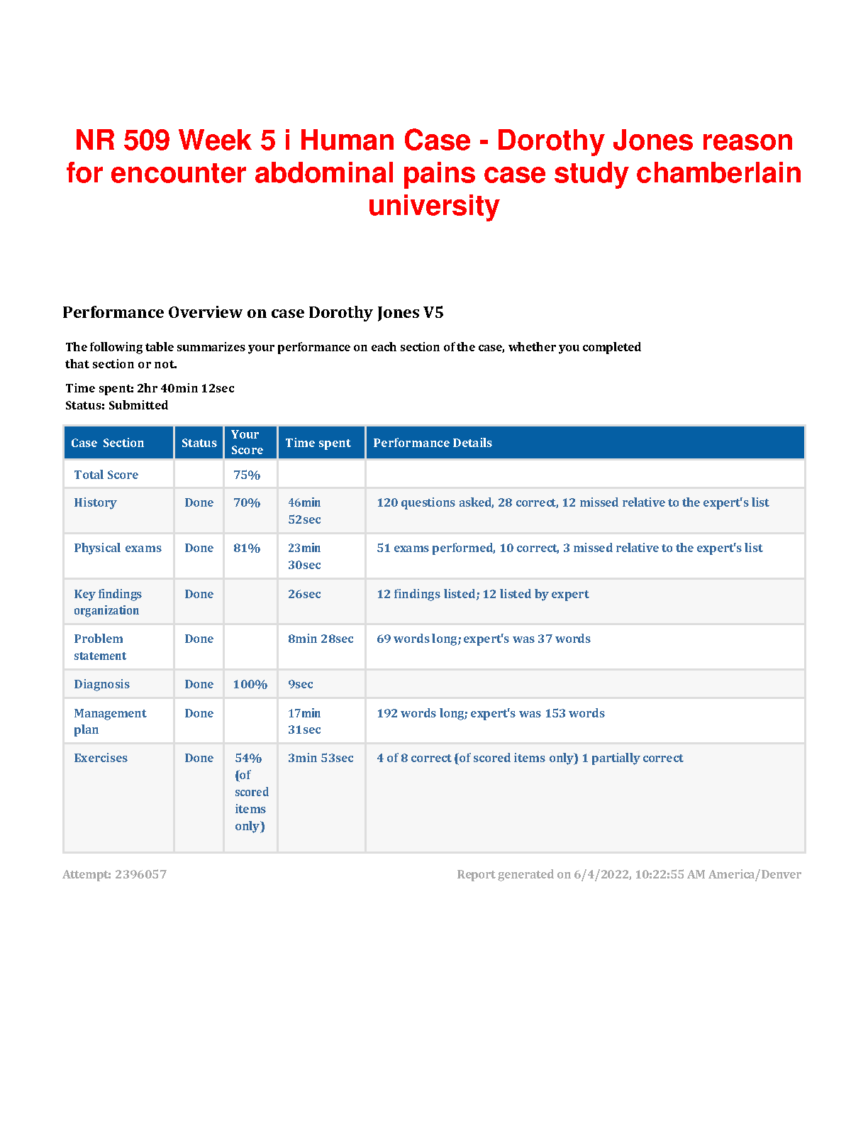 Ace your NR 509 exams on the first try with this comprehensive case study solution for Dorothy Jones' abdominal pain. This guide provides a detailed analysis of...