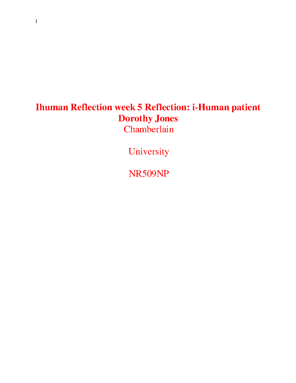 This resource contains a reflection on week 5's i-Human patient case study for Chamberlain University's NR509NP course. Ideal for nursing students aiming to mas...