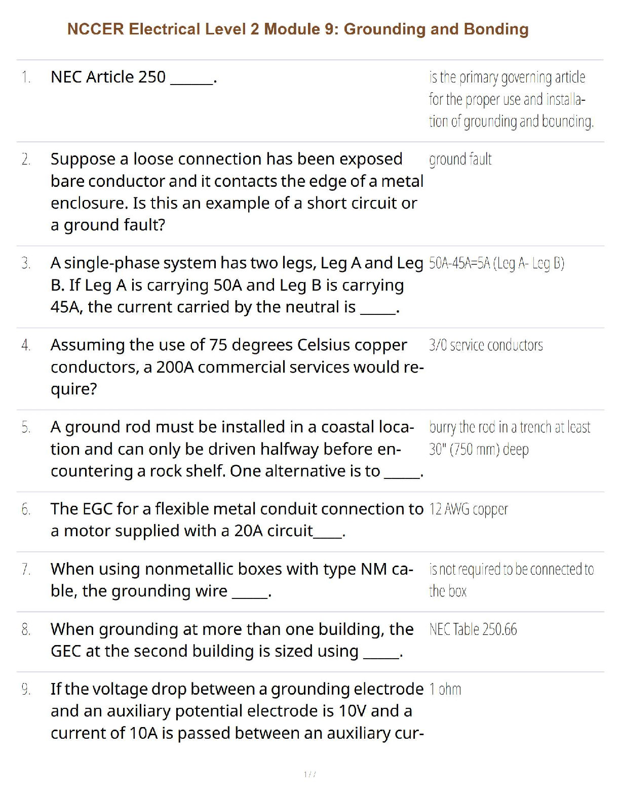 NCCER Electrical Level 2 Module 9: Grounding and Bonding - Practice Questions for 2024/2025 Exams