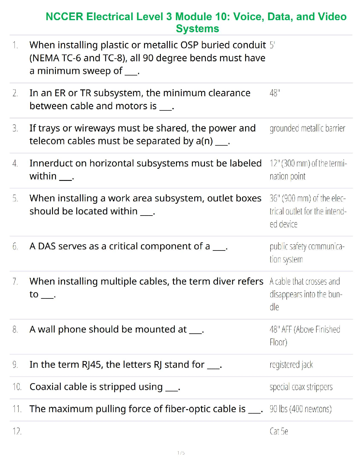NCCER Electrical Level 3 Module 10: Voice, Data, and Video Systems - 2024/2025 Edition - Exam Prep Guide