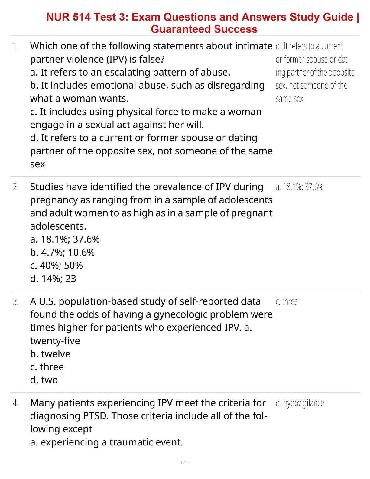 NUR 514 Test 3: Exam Questions and Answers Study Guide - Guaranteed Success (2024/2025 Edition)