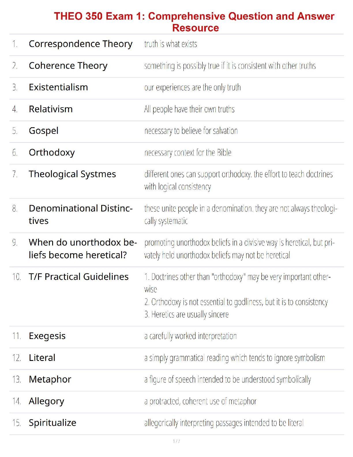 THEO 350 Exam 1: Comprehensive Question and Answer Resource - 2024/2025 Edition