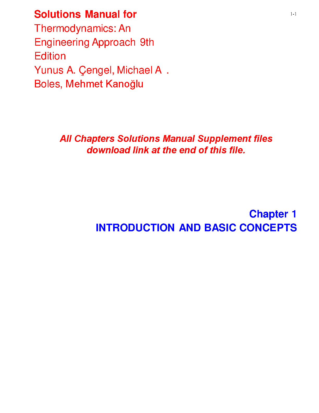 Thermodynamics: An Engineering Approach 9th Edition Solutions Manual by Yunus A. Çengel, Michael A. Boles, Mehmet Kanoğlu